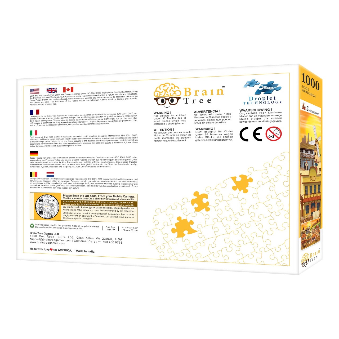 Video je pouze ilustrační, zobrazuje příbuzný produkt.   Puzzle Brain Tree Vás ihned zaujmou prvotřídním potiskem a zpracováním povrchu. Matná úprava je zárukou, že i ty nejmenší multireliéfní detaily obrázku budou za měnících se světelných podmínek dokonale viditelné. Dílky jsou nejen příjemné na dotek, ale nabízí také vysokou otěruvzdornost, sestavování si proto budete moci užívat stále znovu a znovu. Oproti běžným skládačkám, jejichž dílky jsou vyřezány do vzoru mřížky a mají všechny přibližně stejný tvar, jsou dílky puzzle Brain Tree řezány náhodněji. Nabízejí tak širokou paletu rozmanitých, mnohdy překvapivých tvarů, které do skládání vnáší nevšední, dobrodružný rozměr a zábavu. Každý dílek je unikátní! V každém balení naleznete plakát s odpovídajícím obrázkem vytištěným ve stejné kvalitě jako samotné puzzle. Součástí je také několik praktických skládacích kartónových přihrádek, které můžete využít při třídění dílků. Užitečným doplňkem dodávaným spolu se skládačkami je papírový stojan, do kterého můžete usadit víko krabice, abyste mohli při stavbě pohodlně nahlížet na vzorový obrázek. V sadách o 1000 dílcích navíc dostanete i velký a odolný uzavíratelný sáček, který dílky puzzle spolehlivě ochrání před poškozením a ztrátou.   Hlavní vlastnosti:1000 precizně vyřezaných dílků náhodných tvarůvysoce kvalitní potisk, odolná povrchová úpravaplakát formátu 52×30 cm s odpovídajícím obrázkemkartonové přihrádky pro přehledné tříděnístojan na víko krabice pro větší pohodlí při skládáníodolný uzavíratelný sáček chránící dílky před poškozením a ztrátou