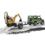 Land Rover je zelený terénní dvounápravový vůz s otevíratelným motorovým prostorem, s detailním zpracováním pohonného agregátu, otevírání dveří, zadních dveří i nákladového prostoru. Má odpružené obě nápravy, odnímatelné závěsné zařízení, střešní zahrádku a funkční řízení. Vůz lze ovládat buď klasickým volantem na místě řidiče nebo je možné použít prodloužený volant a zasunout jej do adaptéru ve středovém panelu Land Roveru po otevření střešního okna, což usnadní ovládání vozu. Prodloužený volant je součástí vozu a je umístěný v podvozku. Součástí tohoto modelu je přívěs se sklopnými nájezdy pro přepravu techniky. Sada obsahuje figurku muže a mikrobagr JCB, což je pásový minibagr s otočnou kabinou a funkčním ramenem se lžící. Minibagr je kompatibilní s figurkami Bworld. Stejně jako všechny vozy BRUDER, byl i tento model inspirován detaily originálu.