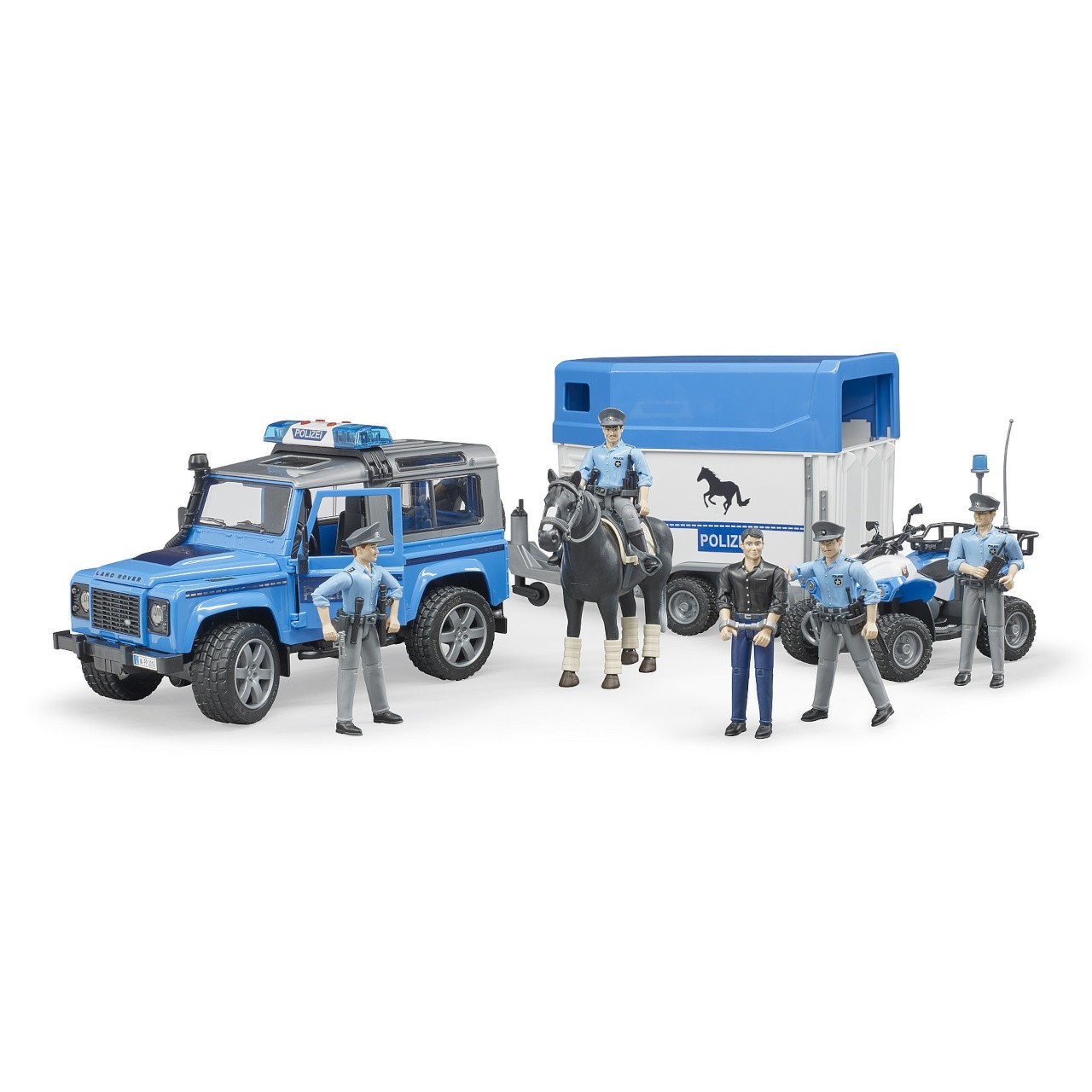 Bruder Policejní Land Rover s přepravníkem na koně a policistou