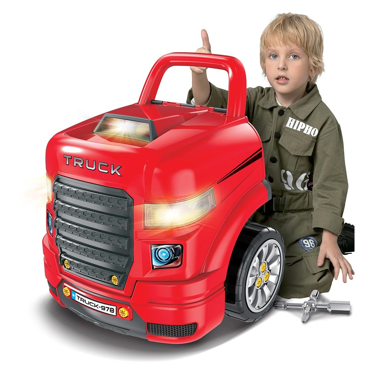 Hračka je určena pro použití v interiéru – ideálně v dětském pokoji či herně. Po vložení baterií mohou děti „opravovat“ motor, měnit díly, spouštět světelné a zvukové efekty nebo si hrát na mechaniky s přiloženým nářadím. Přenositelná konstrukce umožňuje snadné přesunutí dílny kamkoli.