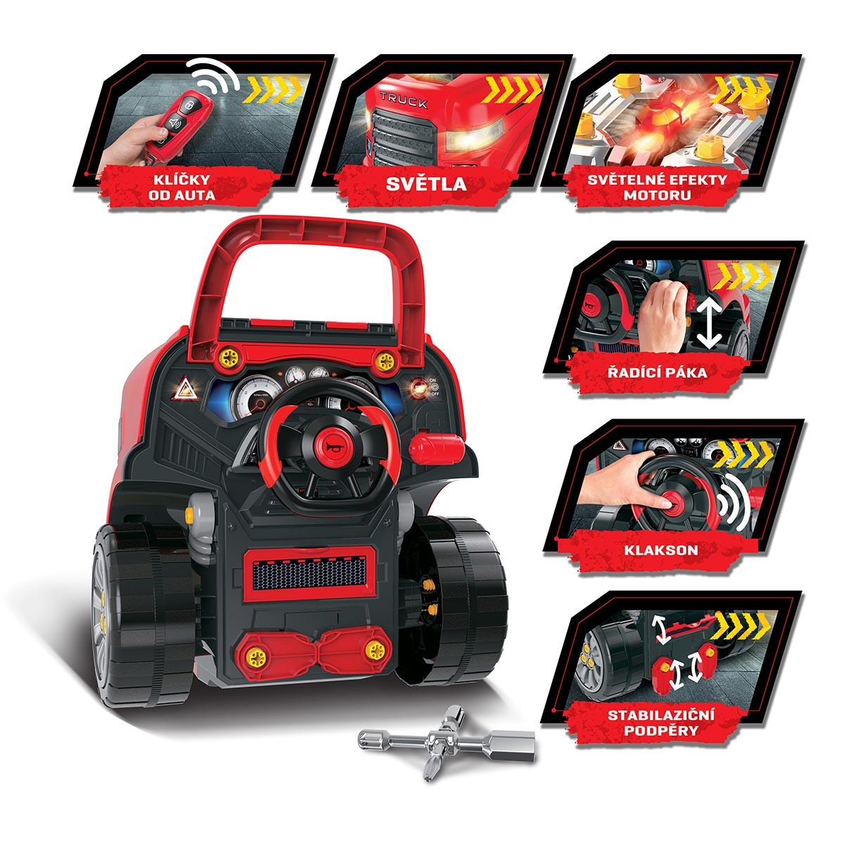 Dětská autodílna BUDDY TOYS BGP 5011 Master motor je interaktivní hračka, která dětem umožní stát se opravdovými automechaniky. Obsahuje detailně zpracovaný motor, který lze rozebírat a znovu skládat, funkční klíčky se zvuky startování, světla i alarm a celkem 61 dílů příslušenství. Díky kolečkům a madlu je přenášení dílny snadné a hra tak může probíhat kdekoli v domě.