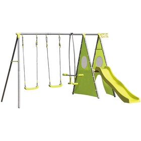 Plastová sedátka jsou zavěšena na nastavitelných lanech, lze nastavit podle výšky dítěte