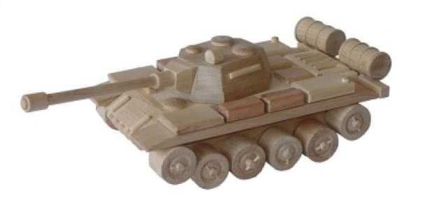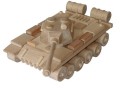 Dřevěný model tanku je vyroben z vysoce kvalitního bukového dřeva. Jeho povrch je pouze voskován a leštěn, není nijak chemicky upravován či barven, aby byl zachován přírodní vzhled. Dřevěnému tanku se točí kolečka, má otočnou věž a nastavitelné dělo . Nemá žádné ostré hrany. Je vhodné i na pískoviště. Hlavní vlastnosti: Precizní zpracování bukového dřeva Zaoblené hrany Pohyblivé prvky modelu