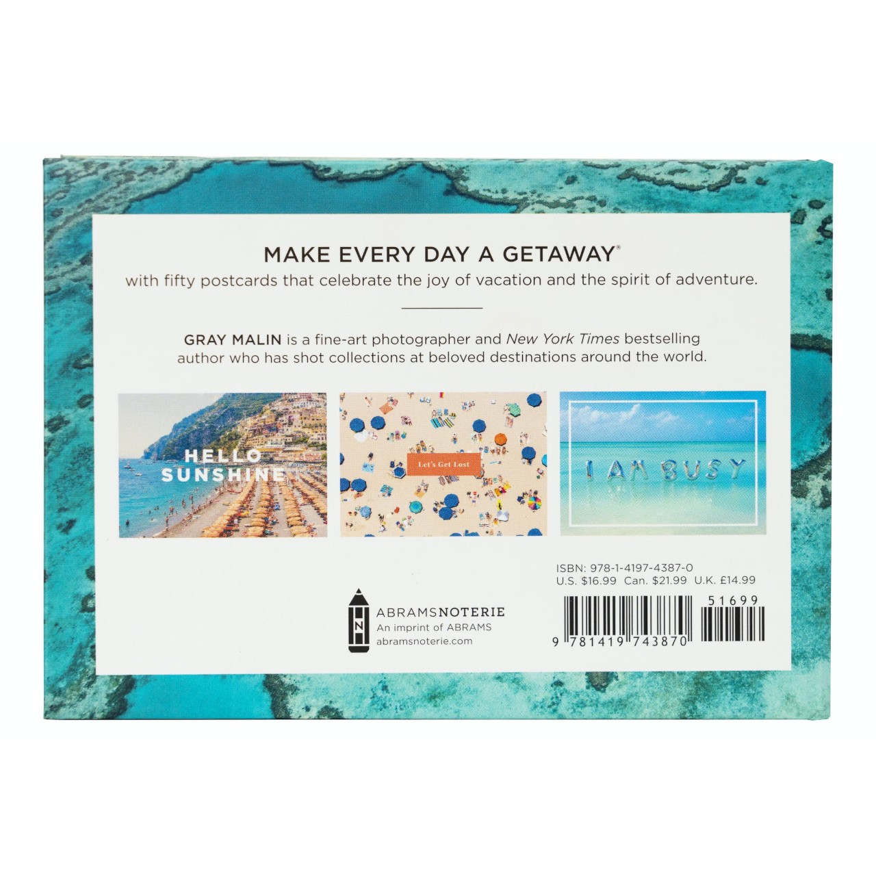 Unikněte ze všedního dne prostřednictvím pohlednic s populárními snímky proslulého amerického fotografa Graye Malina. Vydejte se pomyslně do některého z prosluněných rájů. Připomeňte si dovolenou, pošlete svým přátelům hřejivý pozdrav, nebo doprovoďte dárek jedinečným přáním! Úchvatné barvy okouzlujících snímků pobřeží a pláží dokonale vynikají díky vysoce kvalitnímu tisku a papíru. Pohlednice jsou dodávány ve formě knihy, baleny v pevných a atraktivně dekorovaných deskách.   Hlavní vlastnosti:50 ks pohlednic s různými obrázkypevný a poutavý přebalvysoce kvalitní tisk a materiály