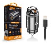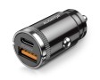 Výkonná miniaturní nabíječka do auta řady „POWER DELIVERY“ v elegantním kovovém provedení s USB-A portem a ultra rychlým USB-C portem o výkonu 30W.