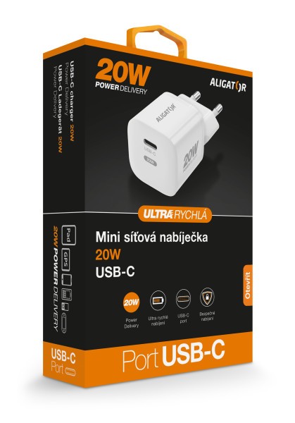 Chytrá mini síťová nabíječka ALIGATOR Power Delivery 20W, USB-C