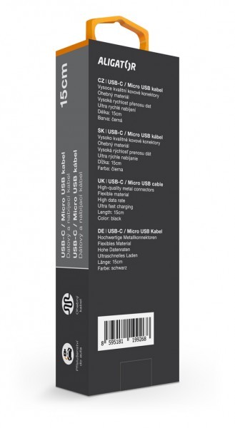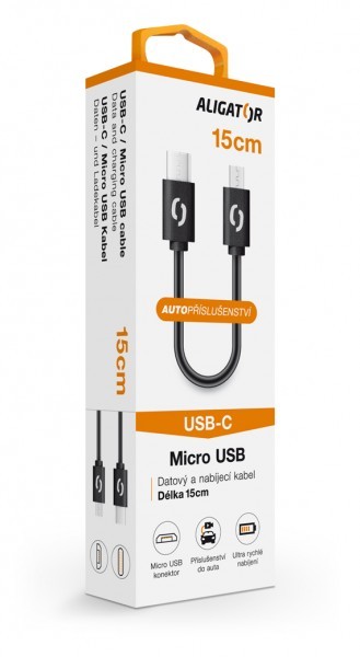 Datový kabel ALIGATOR POWER USB-C/MicroUSB 15cm, černý