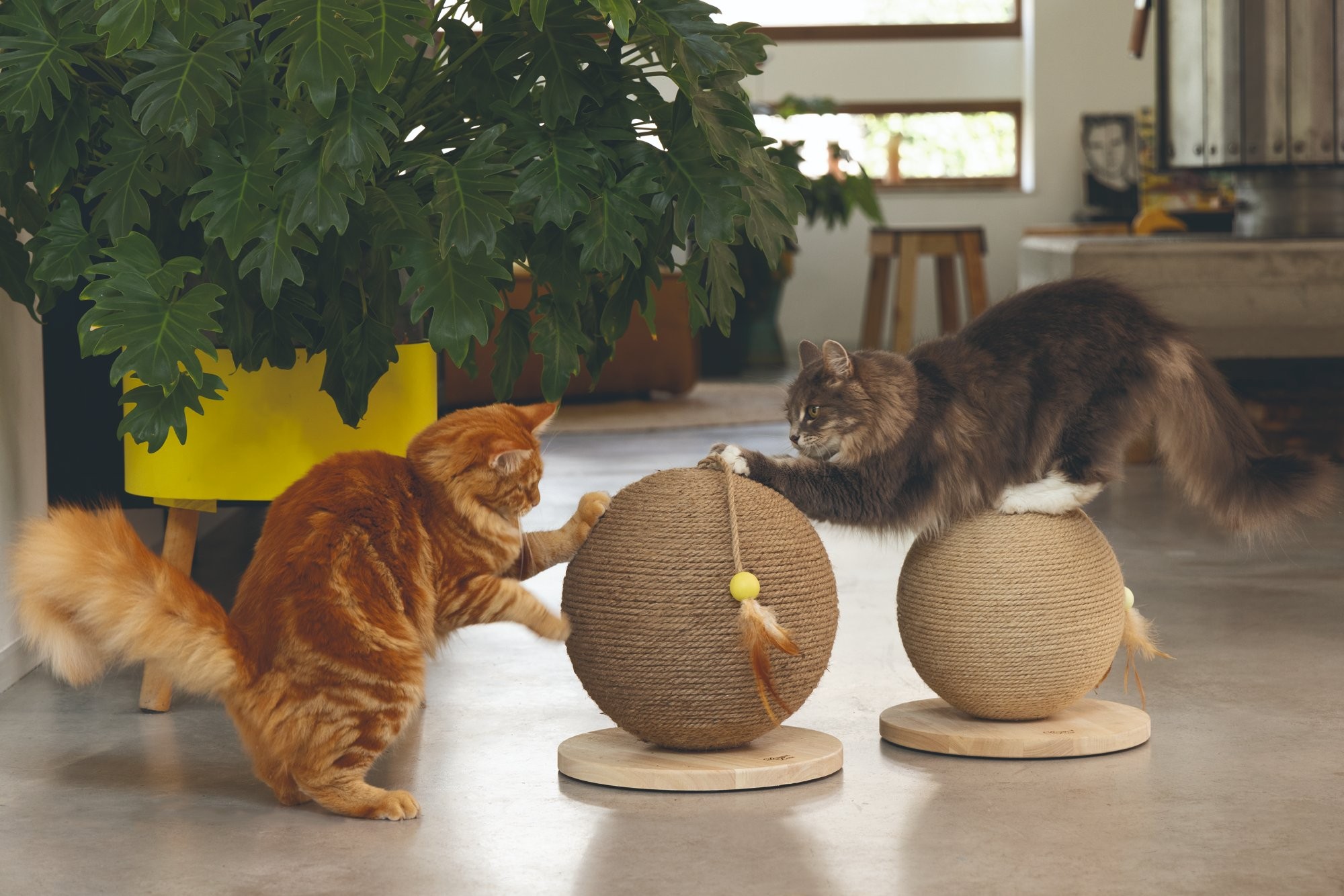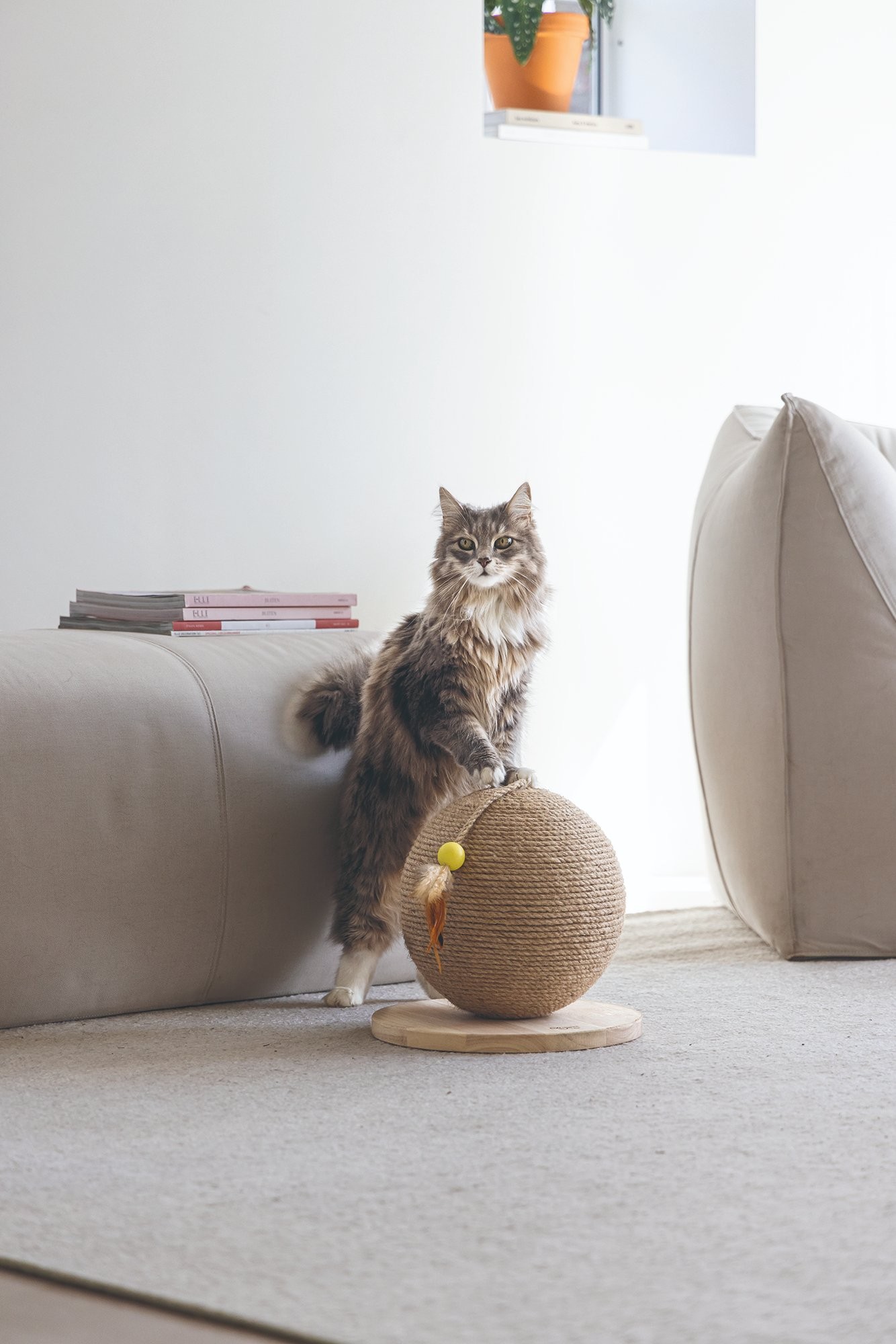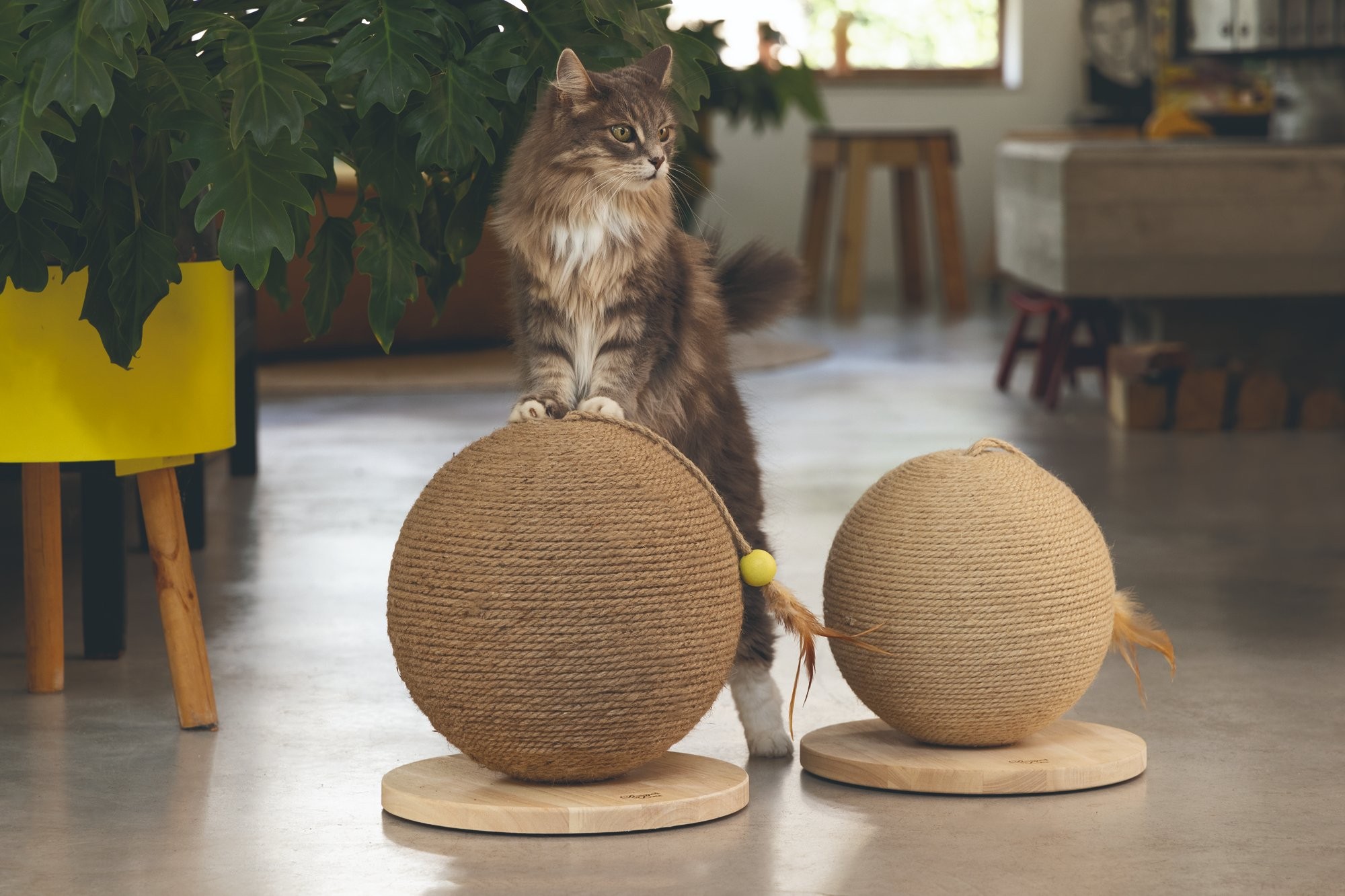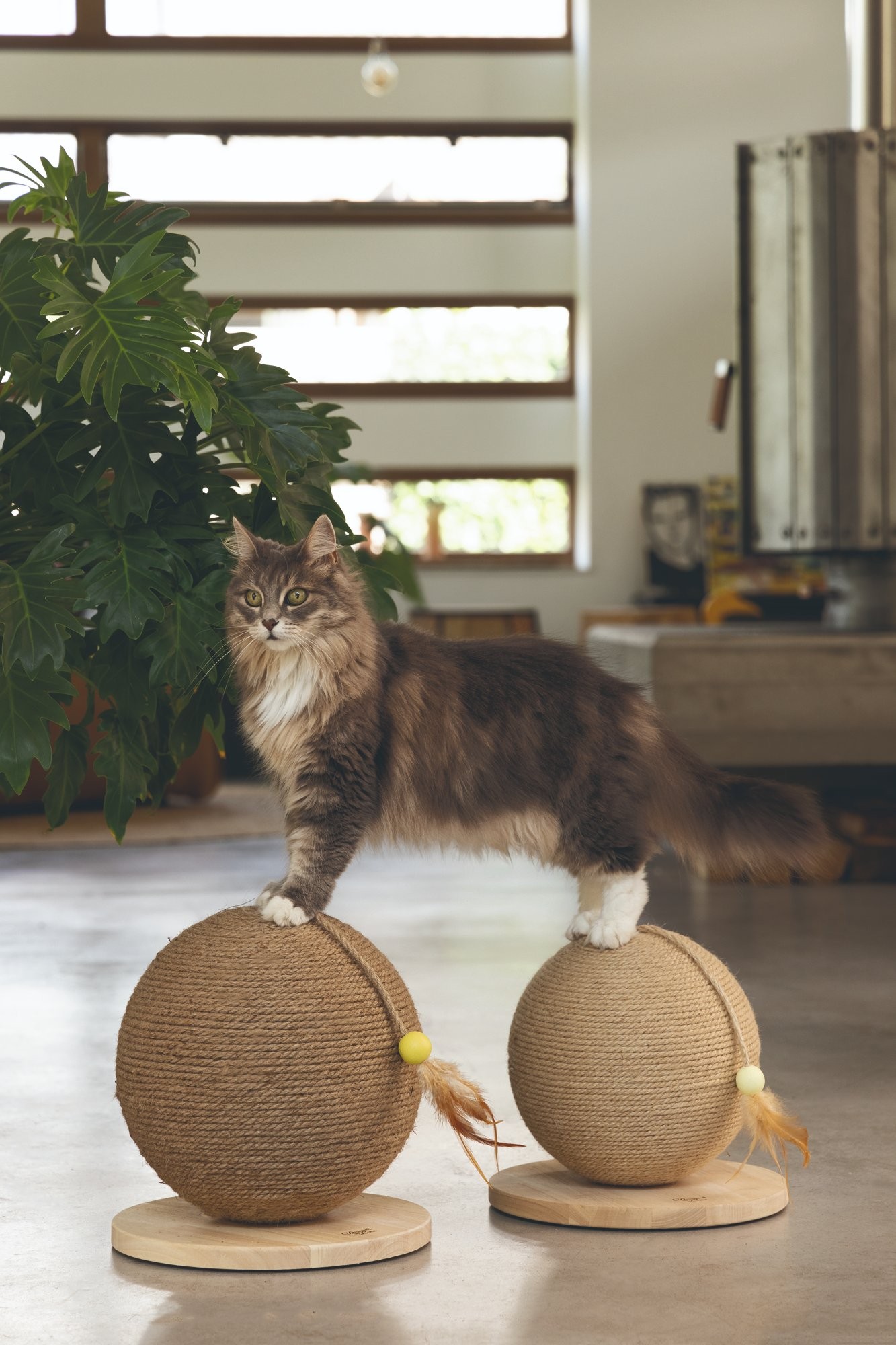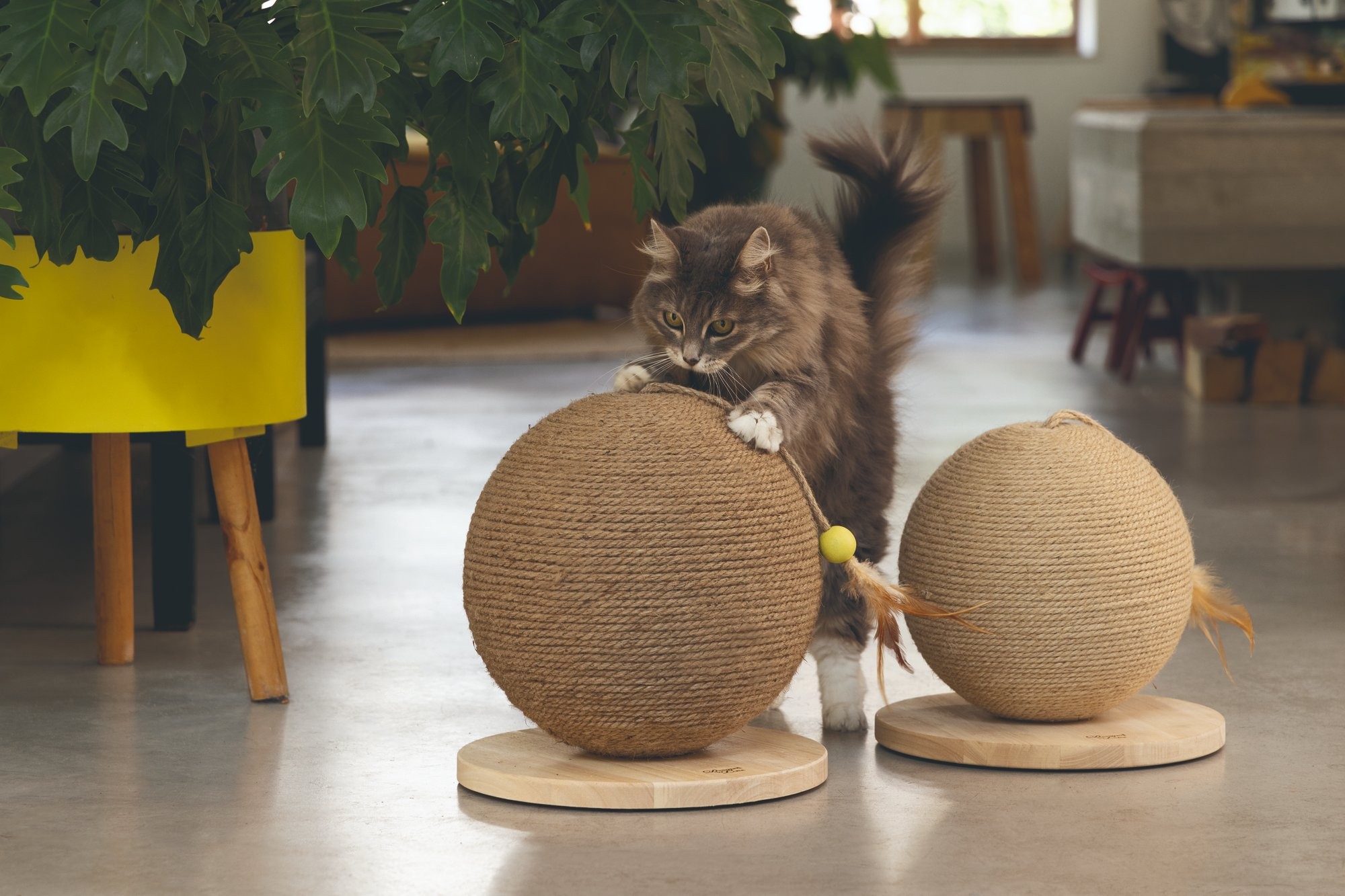Představujeme škrabadlo Balty XL od Designed by Lotte - fantastický kousek, který ozdobí Váš interiér a Vaší kočce poskytne hodiny zábavy. Koule se škrabacím lanem uspokojí přirozenou potřebu škrábání, takže Váš mazlíček nechá nábytek a podlahové krytiny na pokoji. Protože je tato škrabací koule vyrobena ve verzi XL, má Vaše kočka ještě více prostoru na škrábání. Lákavým detailem je hračka s pírky, připevněna navrchu koule. Verze Balty XL má i menšího bratra Balty.