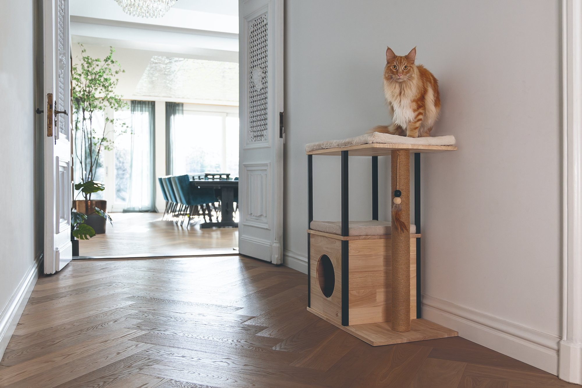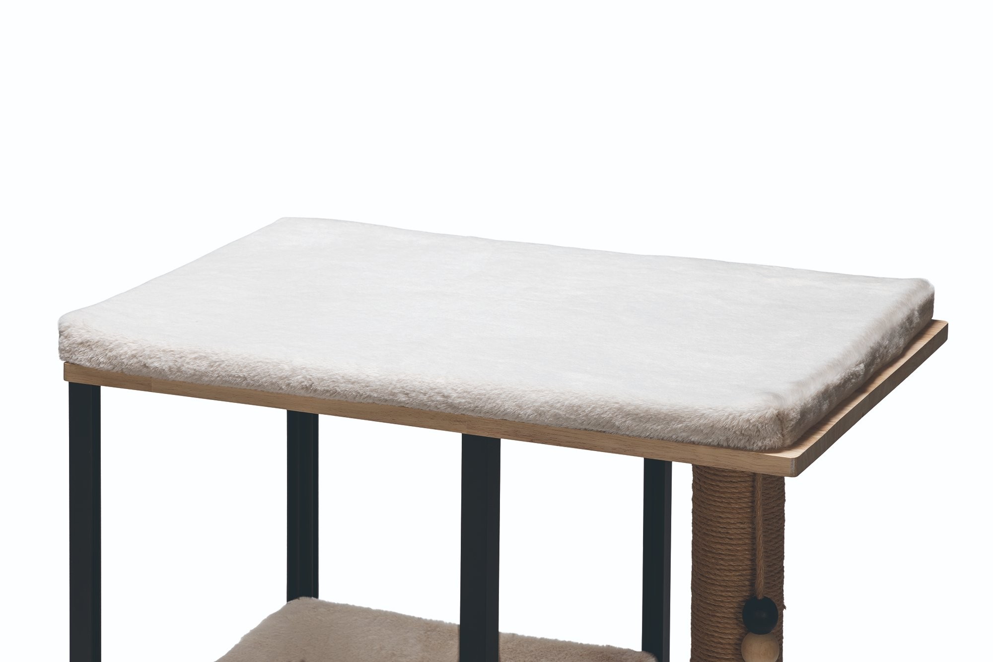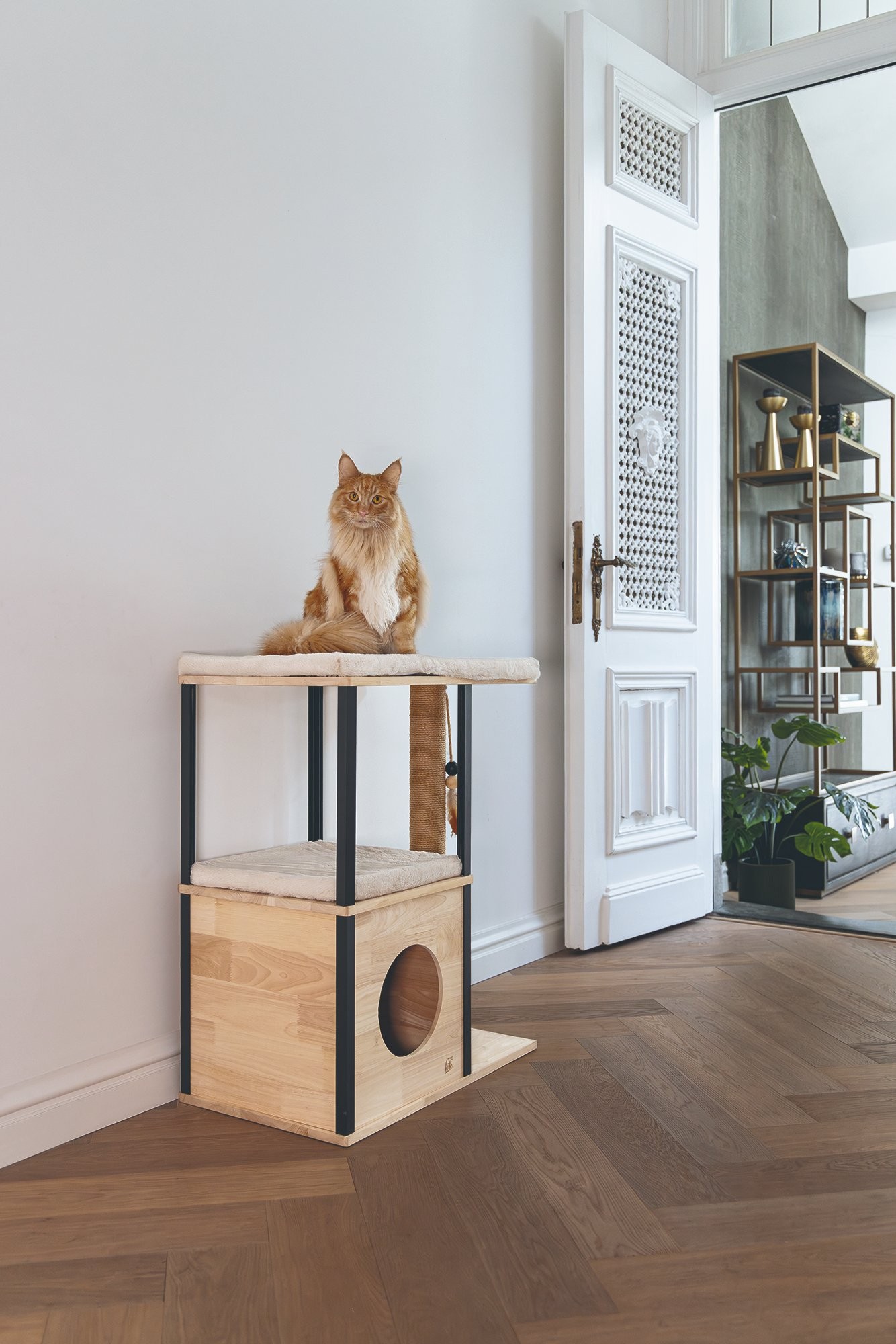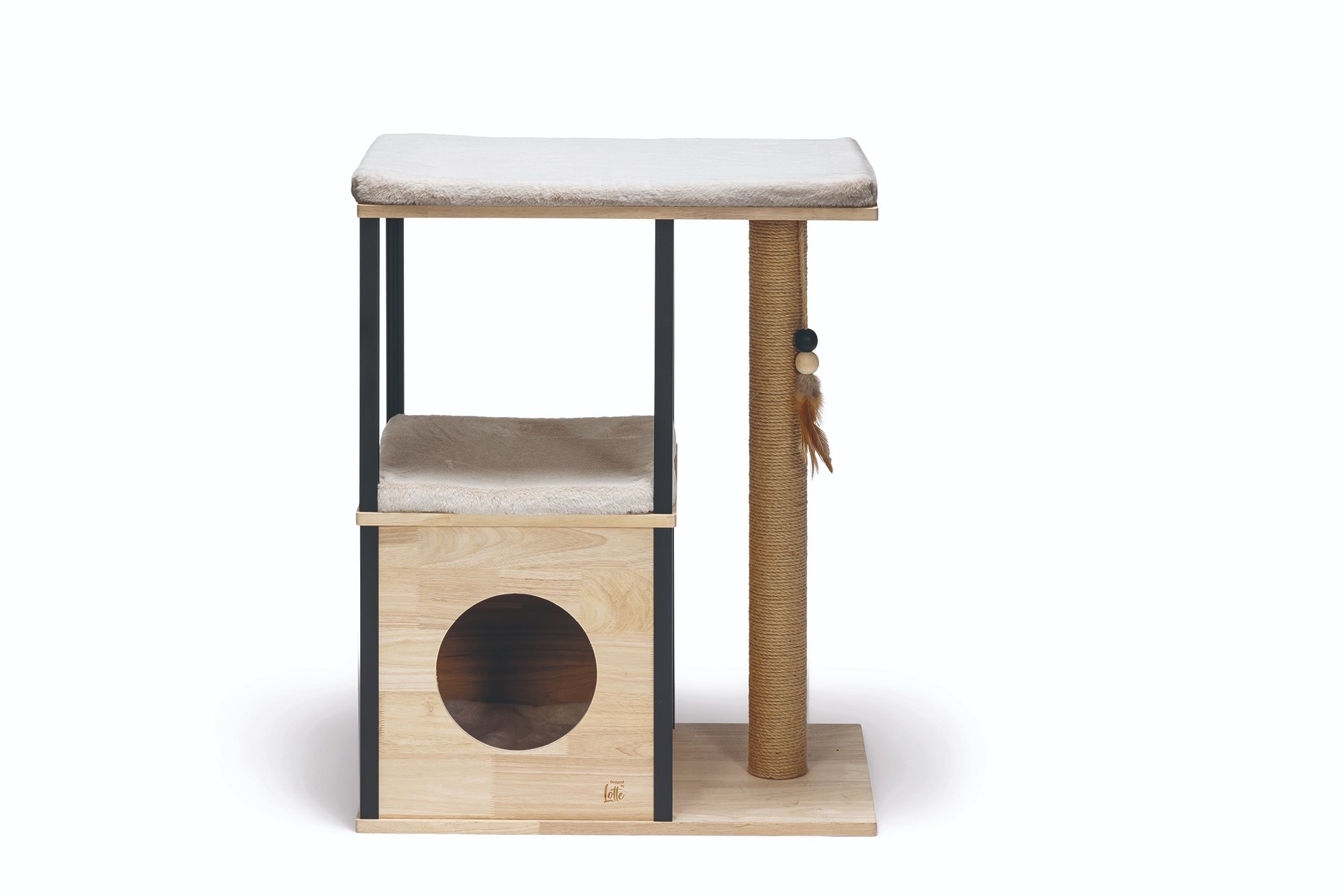 Představujeme Vám praktický a krásný kus nábytku jménem Nala od Designed by Lotte. Bude nejen skvělým škrabadlem pro Vaši kočku, ale poskytne jí hned několik pohodlných míst k odpočinku. Domeček má vepředu jeden vstupní otvor, a tak zajistí, že se Váš mazlíček bude uvnitř cítit v bezpečí. Přidané polštářky v domečku a na plošinách přispívají při lenošení k extra pohodlí. Škrabadlo je vyrobeno z kaučukového dřeva a má krásný hliníkový rám. Škrabací sloupek je obalen jutou. Pro ochranu Vaší podlahy je toto škrabadlo dodáváno s ochrannými nožičkami.