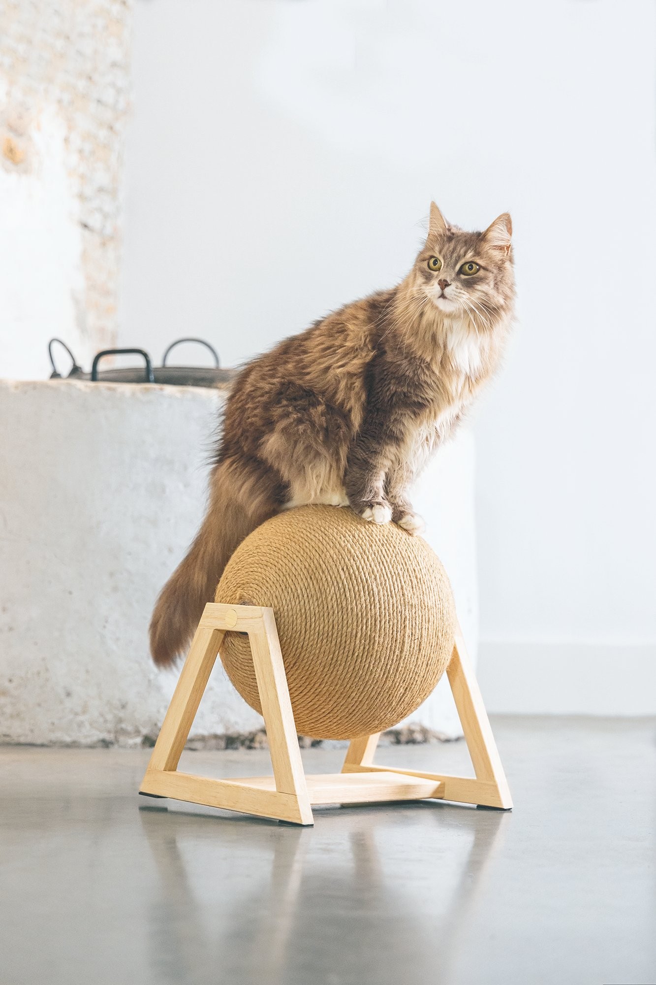 Protože škrabadlo Balty ve tvaru koule má velký úspěch, přichází další kousek od Designed by Lotte - škrabací koule Xem, která je pevně umístěna v krásném dřevěném stojanu. Velká škrabací koule nejenže vypadá opravdu pěkně v každém interiéru, ale nabízí Vaší kočce dostatek zábavy a prostoru ke škrábání.