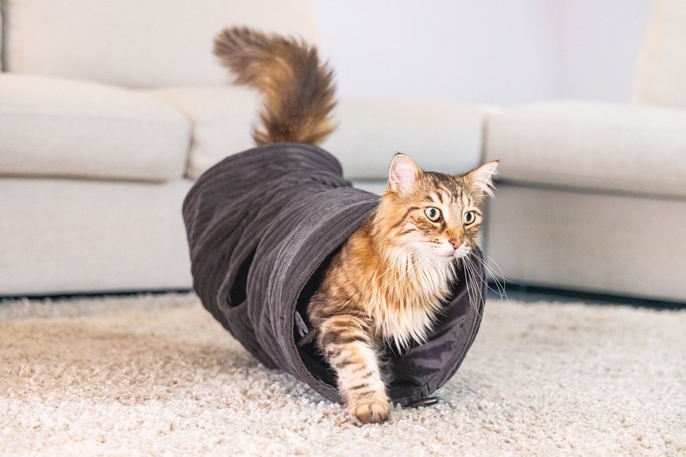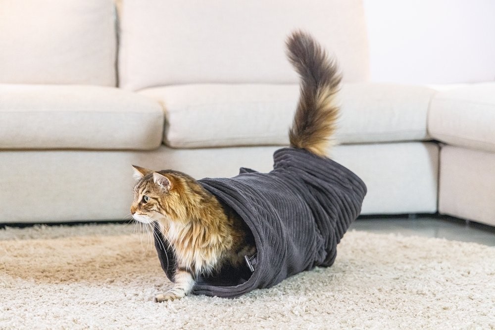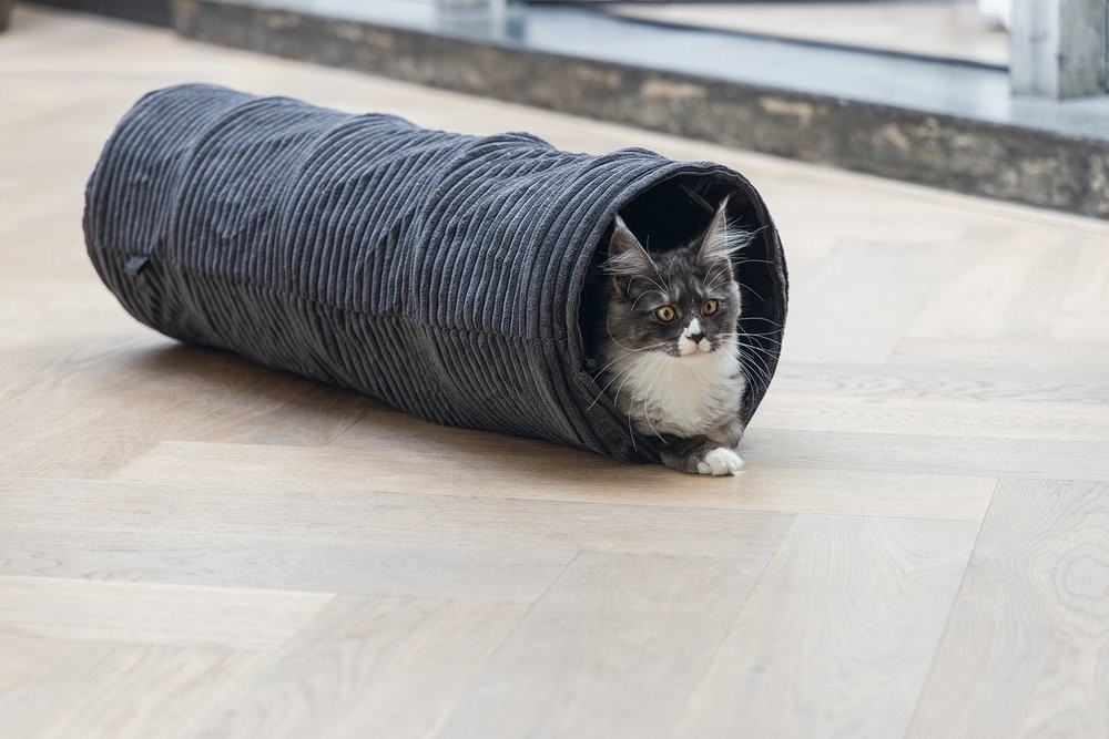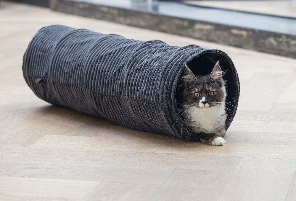 Elegantní tunel zajistí hodiny zábavy. Vaše kočka se bude ráda v tunelu schovávat nebo jím probíhat. Tunel má navíc jeden otvor uprostřed. Zabudované kovové kruhy udržují tunel otevřený a napnutý. Je opatřen krásnou, trendy žebrovanou látkou. Díky tomu se perfektně hodí k nejnovějším trendům bydlení a stane se krásným doplňkem Vašeho interiéru. Už si Váš chlupatý mazlíček dohrál? Pak můžete tunel snadno složit naplocho a uložit pro úsporu místa.