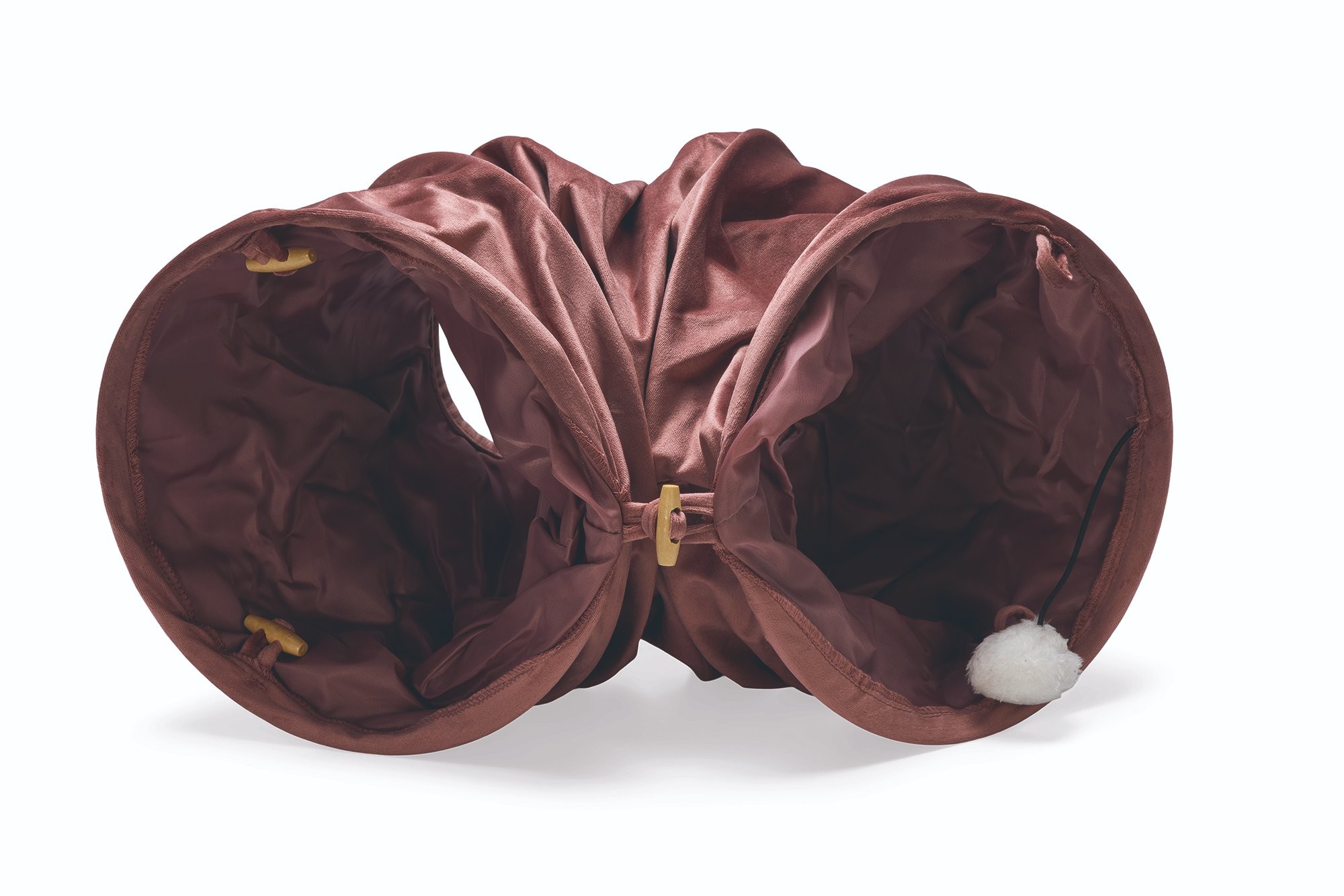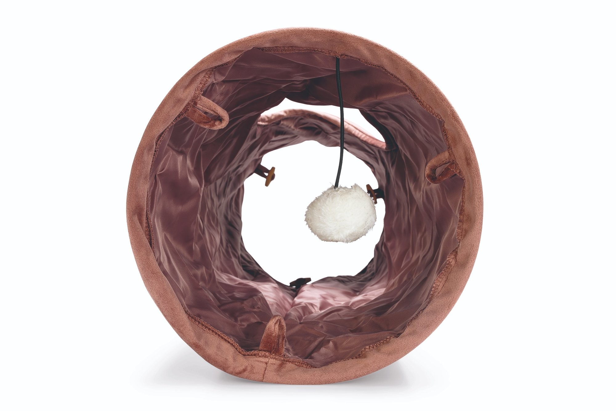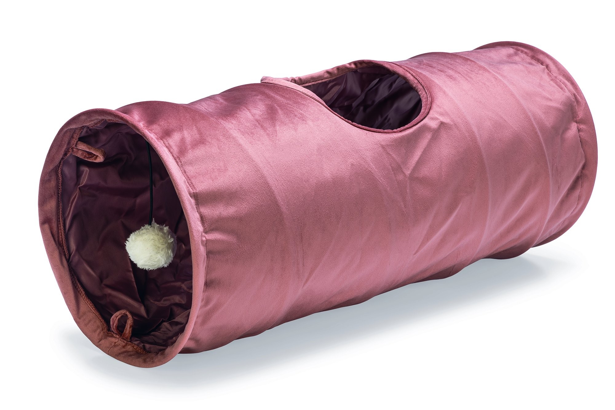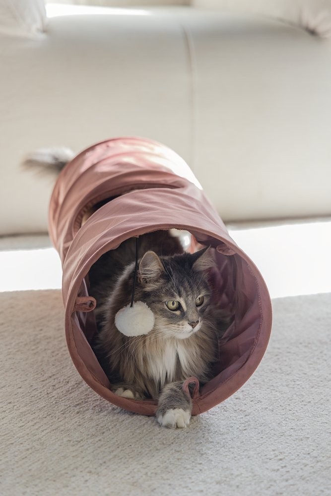 Elegantní tunel Cylla zabaví Vašeho domácího mazlíčka na celé hodiny. Vaše kočka se bude ráda v tunelu schovávat nebo jím probíhat. Tunel má otvor nejen vpředu a vzadu, ale Vaše kočka může také uniknout z tunelu otvorem uprostřed. Přidaná hračka ve formě zavěšeného chlupatého míčku se postará o extra zábavu. Zabudované kovové kruhy udržují tunel otevřený a napnutý. Kočičí tunel Cylla má zvenku krásnou sametovou látku, díky které se krásně hodí do každého interiéru a můžete jej sladit s různými trendy bydlení. Už si Váš chlupatý mazlíček dohrál? Pak můžete tunel snadno složit naplocho a uložit pro úsporu místa.