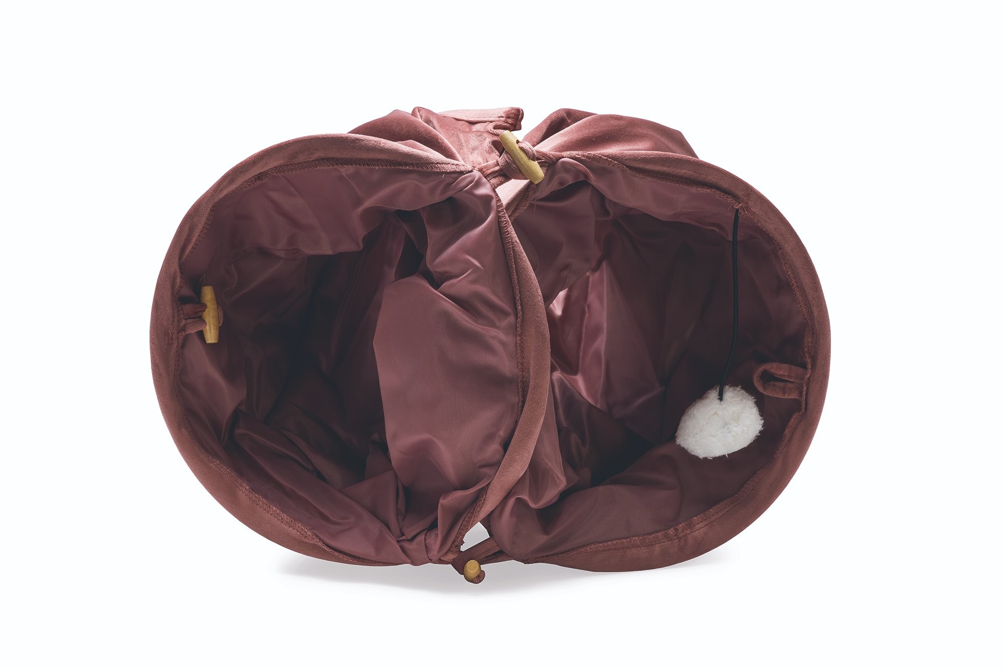Skládací tunel s hračkou pro kočky, kombinace sametu a polyesteru. Celý popis