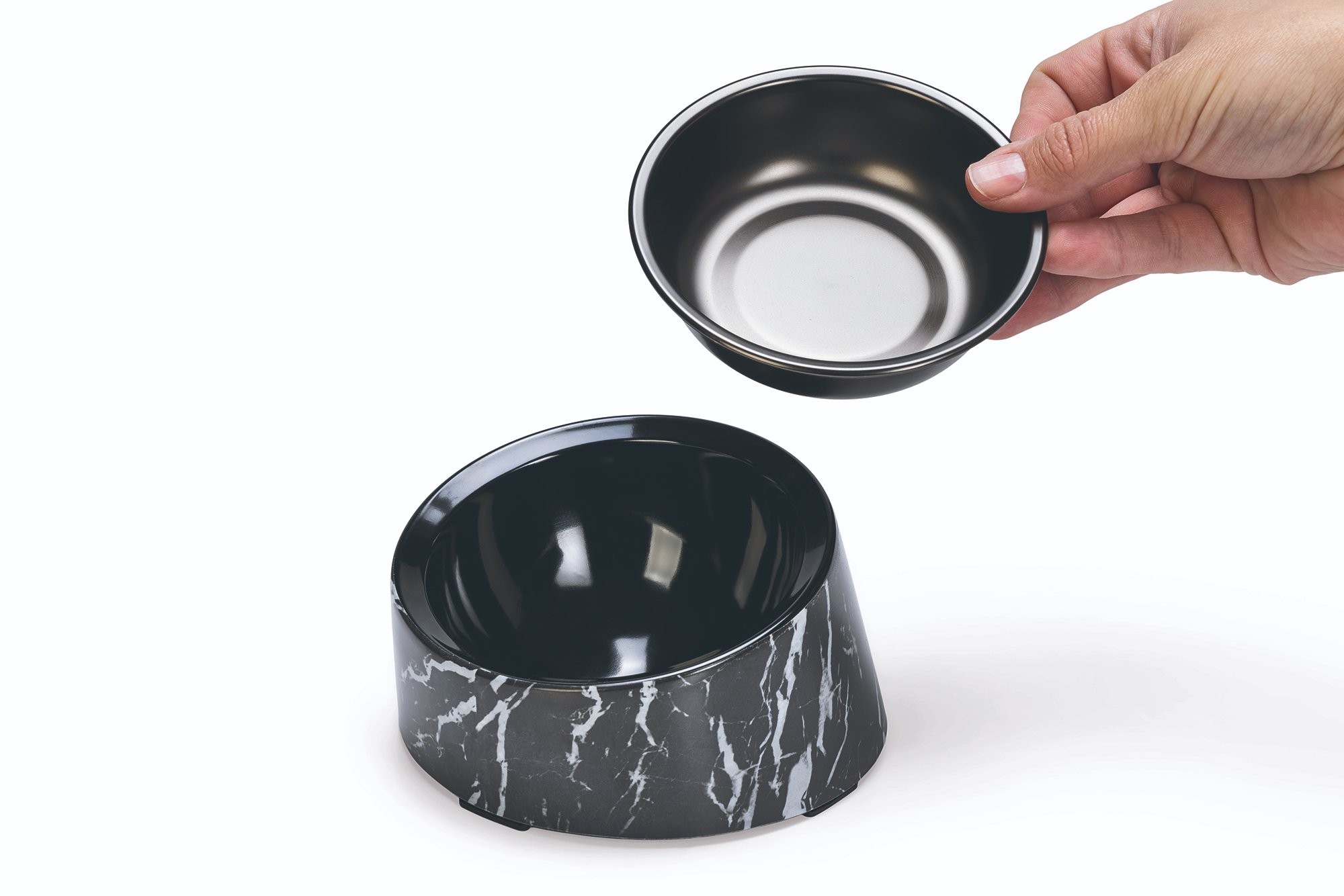 Úvod Chovatelské potřeby Kočky Misky Nerezové Designed by Lotte Vita Designová miska pro kočky Vzor černý mramor 160ml