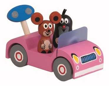Detoa Dřevěné auto růžové - Krtek na výletě