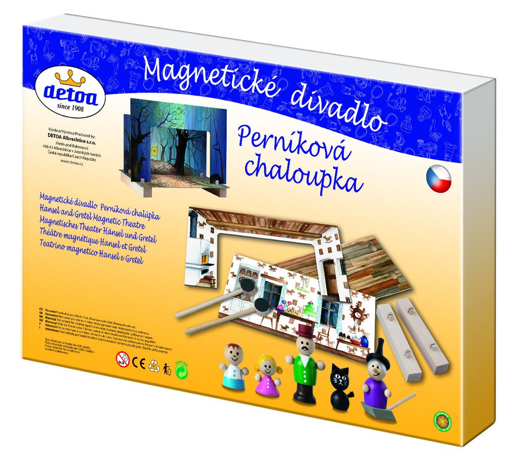 Magnetické divadlo Perníková chaloupka je výborná zábava pro malé i velké na motivy oblíbené pohádky. Ve figurkách je vlepený magnet, který se přitahuje k magnetu ve vodítku. Hlavní vlastnosti: Hra rozvíjí dětskou fantazii a kreativitu při vymýšlení vlastních pohádkových příběhůVýrobek splňuje požadavky EU na bezpečnost hračekVhodný pro děti od 3 let
