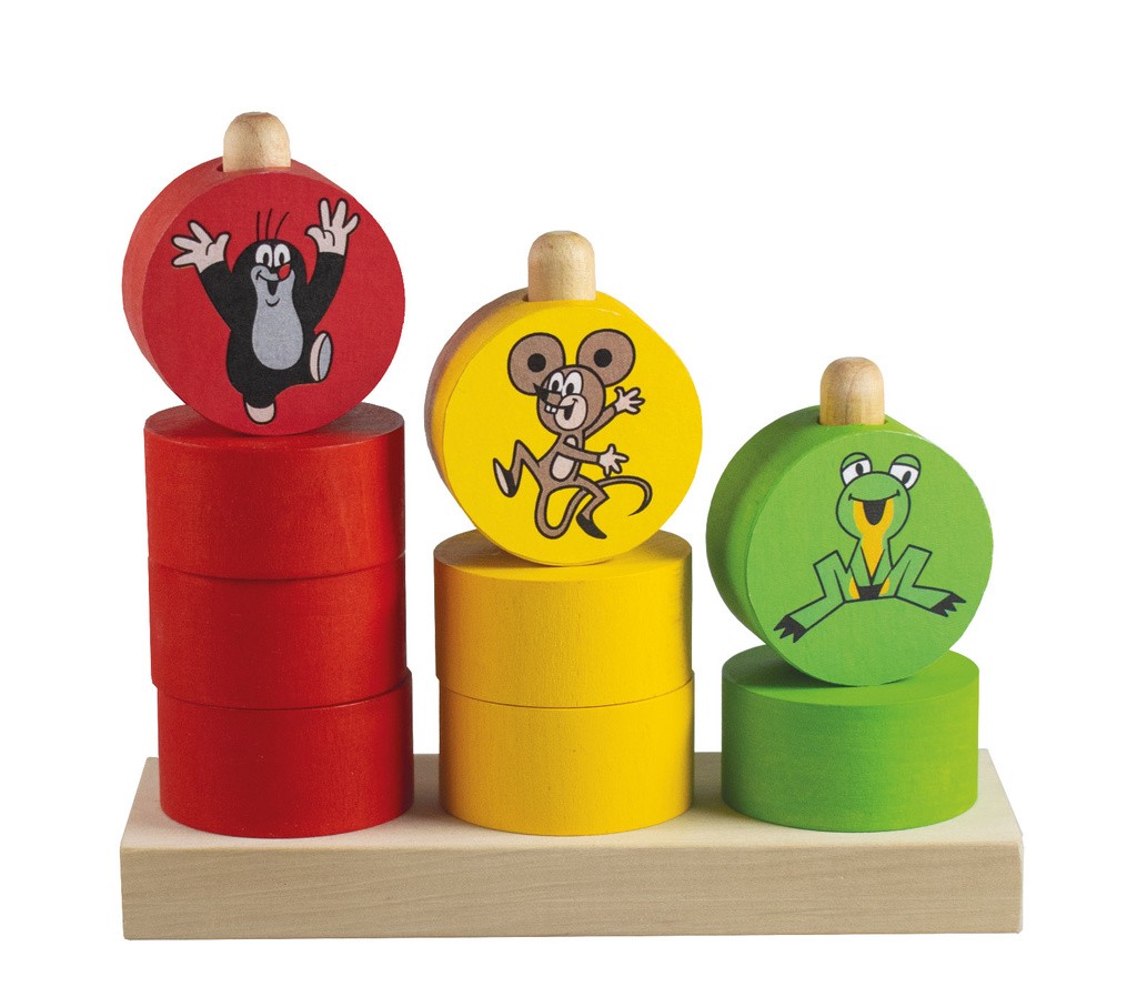 Veselé pyramidy se skládají z 12 navlékacích dílů a jednoho základního dílu se třemi tyčkami. Skládací pyramida pomáhá rozvíjet motoriku rukou a představivost dítěte. Výrobek splňuje požadavky EU na bezpečnost hraček a je vhodný pro děti od 1 roku. Hlavní vlastnosti: 12 dílů skládačkyrozvíjí motoriku tradiční a odolná hračkavyrobeno v České republice © Zdeněk Miler
