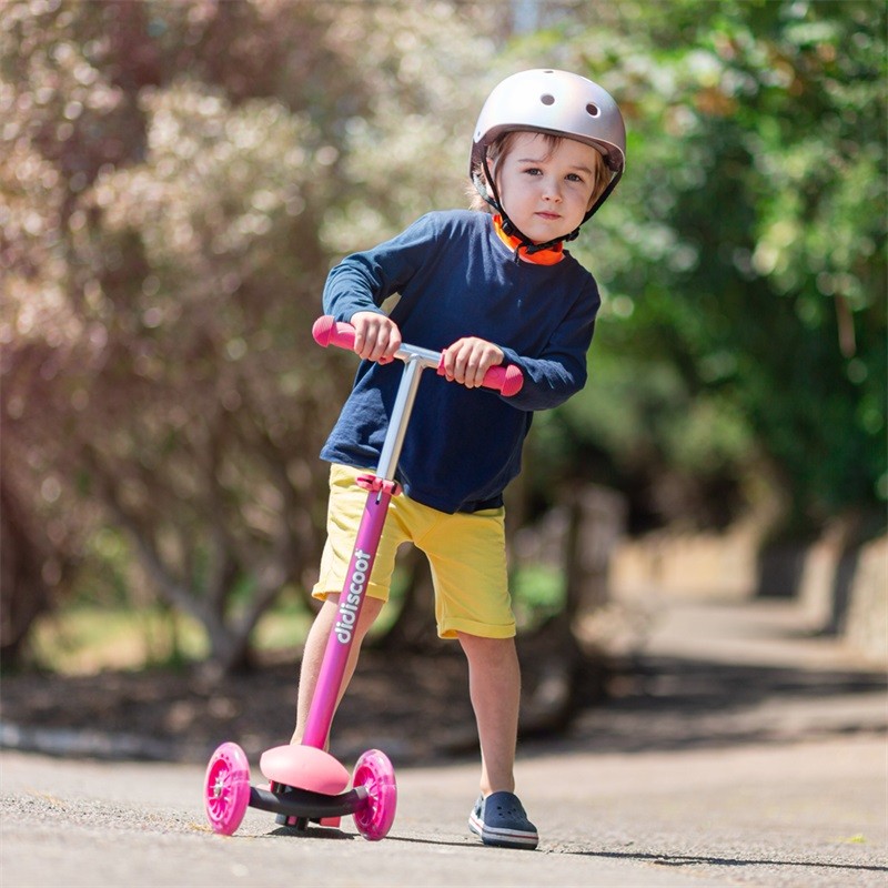 Užijte si jízdu na moderní designové koloběžce Didiscoot. Řídí se náklonem a jízda může dopomoci zejména k utužení fyzické kondice a koordinace pohybu. Koloběžka je skládací, což usnadňuje přenášení a šetří prostor. Řídítka můžete nastavit do několika výškových úrovní, hračka je tak přístupná mnoha věkovým kategoriím a může s dětmi vyrůstat. Zadní kolečko je vybaveno brzdou. Díky konstrukci z pevných nezávadných plastů a lehkých slitin je koloběžka lehká. Řídítka lze vysunout do tří výšek nad standardní polohu 50 cm: 58 cm, 67 cm, 76 cm. Vyhovuje evropským bezpečnostním směrnicím. Hlavní vlastnosti: ovládání náklonempro děti od 3 letnosnost max. 50 kg