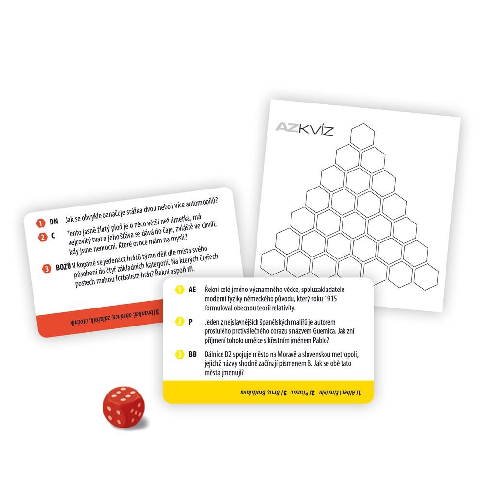 Všechny odpovědi na dětské otázky nejspíš nezná nikdo. Ale na kolik otázek znají odpověď děti? To se uvidí při AZ kvízu junior. Tuhle kompaktní sadu 360 otázek si navíc můžete vzít i na cesty a změřit tak síly, kdykoli a kdekoli budete mít náladu. Princip hry je stejný jako u její TV obdoby, propojit pomocí správných odpovědí svou barvou tři strany herního plánu. Hra je určená školákům od 10 let pro které bude zábavným a hravým opakováním učiva. Karty můžete použít samostatně jako cestovní hru nebo jako rozšíření velké hry AZ kvíz junior. Balení obsahuje: 60 oboustranných karet s 360 otázkami70 záznamových tabulek s herním plánem1 bodovou hrací kostku Hlavní vlastnosti: 360 otázek, 70 tabulek s herním plánem, 1 kostkacestovní hra Dokumentace:návod ke hře AZ kvíz junior na cesty (CZ)