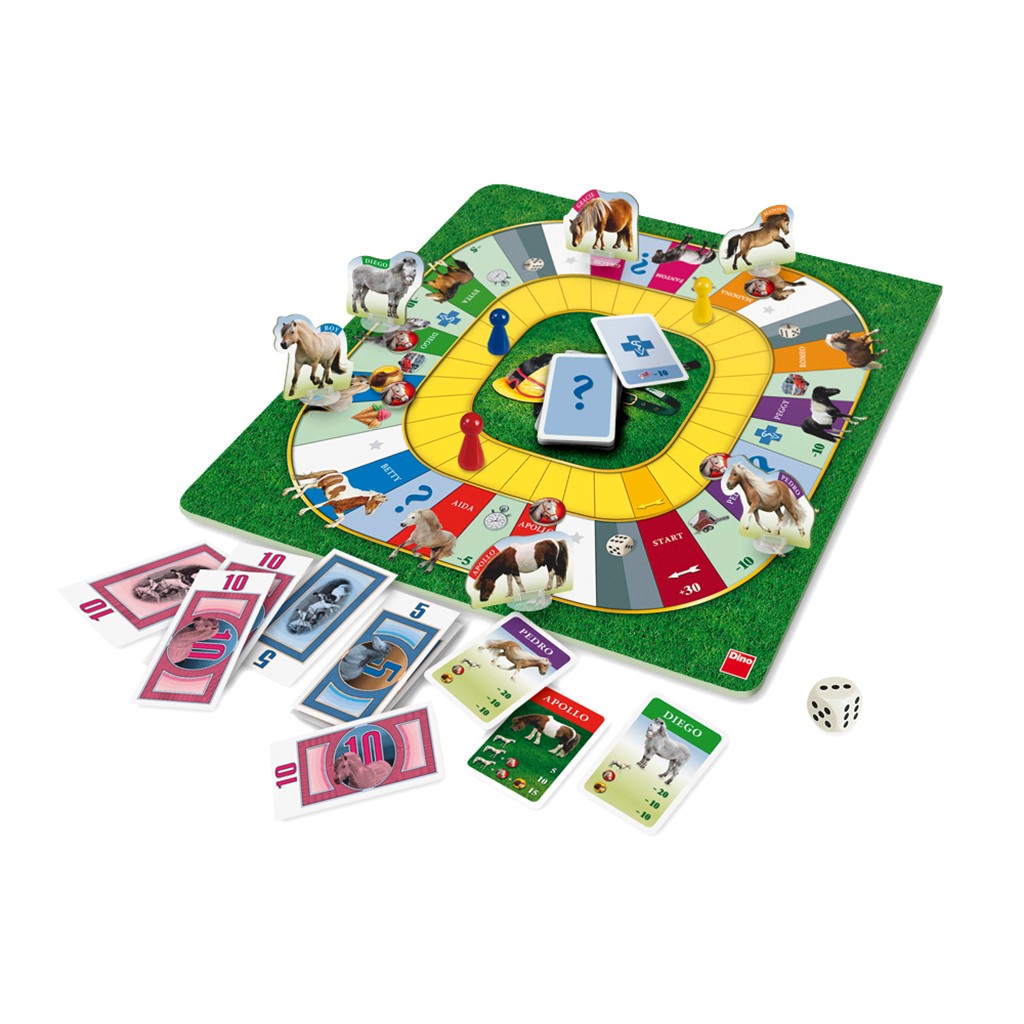 Naučte své děti znát hodnotu peněz hravou formou. Pomůže vám v tom dětská varianta legendární české hry Dostihy a sázky. Kromě speciálně přizpůsobených pravidel se ratolestem zalíbí i postavičky poníků a žetony s potiskem. Hráči při hře nakupují zvířata a výbavu, přičemž musí dobře hospodařit se svěřenými penězi. Děti od 5 let mohou hrát jednodušší verzi bez peněz. Autor: Ladislav Mareš  Balení obsahuje: 1 herní plán12 karet poníků12 kartónových figurek poníků12 plastových stojánků17 karet náhody162 dostihových peněz24 žetonů s ohlávkou a sedlem4 figurky ve čtyřech barvách1 bodová kostka1 návod  Hlavní vlastnosti: hra zaručí nejen zábavu, ale i napínavé zážitkyprocvičí paměť, postřeh, trpělivost i logické myšlenírozvíjí kreativitu a vyjadřovací schopnostivyrobeno v ČR   Dokumentace:návod ke hře Dostihy a sázky junior (CZ, SK)