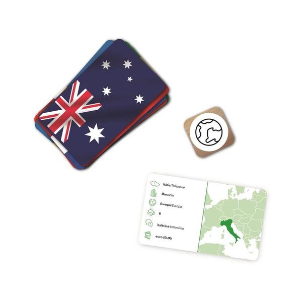 Poznávejte cizokrajné země i ve chvílích, kdy jste zalezlí doma. Rychlá vědomostní a postřehová hra, při které si promrskáte poznávání vlajek a základních reálií o nejrůznějších státech, vás bude bavit jak v rodinném kruhu, tak s partou kamarádů. A je úplně jedno, jestli je vám 10 nebo 60 let. Vítězí ten, kdo nasbírá co nejvíce karet s vlajkami. To se povede jen tomu, kdo nejrychleji a hlavně správně odpoví na otázku, kterou určí symbol na kostce. Balení obsahuje: 72 karetkostku se symboly  Hlavní vlastnosti: procvičí paměť, postřeh, trpělivost rozvíjí kreativitu a vyjadřovací schopnostivyrobeno v ČRdržitel certifikátu Bezpečná a kvalitní hračka   Dokumentace:návod ke hře Poznej vlajky (CZ, SK)       Certifikát „Bezpečná a kvalitní hračka“ je vydáván největší zkušební a certifikační organizací v České republice, Technickým a zkušebním ústavem stavebním Praha, s.p. (TZÚS Praha, s.p.), která je členem řady národních i mezinárodních organizací a aktivně se účastní procesu tvorby technických předpisů a norem. Touto značkou se mohou pyšnit produkty splňující přísné podmínky na kvalitu provedení, bezpečnost a vhodnost použití i snadnost údržby. V procesu certifikace se zohledňuje zpětná vazba od prodejců i zákazníků, zejména ale výrobní proces, který musí zaručovat stálou úroveň produkce i organizačních a kontrolních mechanismů. Podmínkou vydání značky „Bezpečná a kvalitní hračka“ je každoroční namátkové podrobení sériového výrobku sérií ověřovacích zkoušek, díky kterému si zákazníci mohou být jisti oprávněností a aktuálností ocenění.