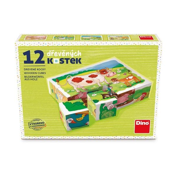 Dovolte dětem, ať si doma postaví rovnou celou farmu. Obrázkové dřevěné kostky přivedou k vám domů partičku hospodářských zvířat v čele s kravičkou, kohoutem či třeba prasátkem. 12 kostek poslouží nejen jako retro skládačka, ale i jako stavební materiál na komín či věž. Dítka se u nich skvěle zabaví, a přitom potrénují motorické schopnosti a představivost. Ke všem šesti obrázkům jsou v krabičce také předlohy. Hlavní vlastnosti: kostky se vyrábí z českého smrkového dřeva v naší ryze české továrně Dino Topaoblíbená hračka pomáhá dětem rozvíjet nejen fantazii a tvořivost, ale také motorické schopnostikvalitní přírodní materiál přežije celou generaci a je zdravotně nezávadnývyhrají si s nimi šikulové od 3 let