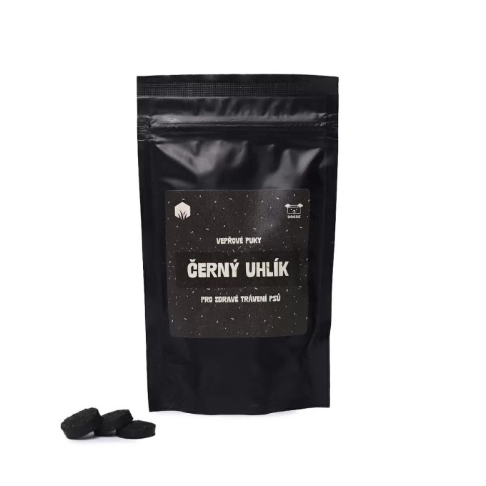 Pamlsek s živým uhlím, který byl vyroben ve spolupráci se start-upem Živý uhlík. ŽIVÉ UHLÍ je přírodní přípravek z rostlinného uhlí, podporující zdravé trávení. Pomáhá udržovat rovnováhu střevního prostředí a podporuje rozvoj střevní mikrobioty. Pamlsek je vyrobený v Česku.