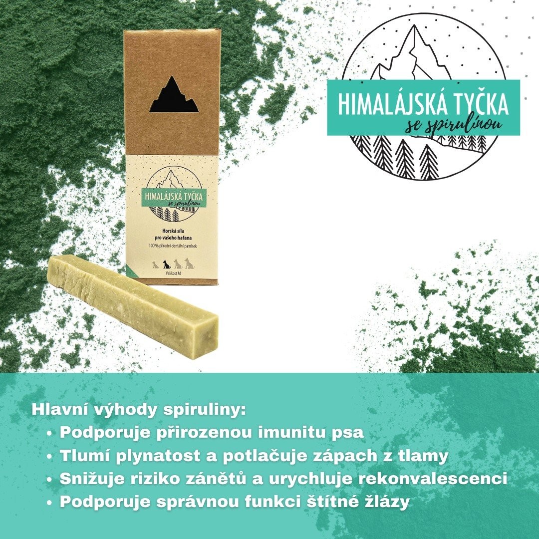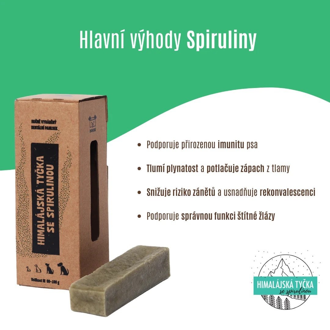 Oblíbená Himalájská tyčka od Dogsie dostala zelený kabátek! Tentokrát jsme ji obohatili o spirulinupřírodní superpotravinu, která podporuje imunitu, zdravé trávení i svěží dech. Stejně jako klasická varianta je i tato tyčka extra tvrdá a dlouhotrvající. Díky výrobě z kvalitního belgického mléka od kraviček z pastvin a pomalému sušení po dobu až 3 měsíců se při žvýkání a slinění postupně obrušuje a měkne, takže si ji pejsek bezpečně užije a přitom si čistí zuby.