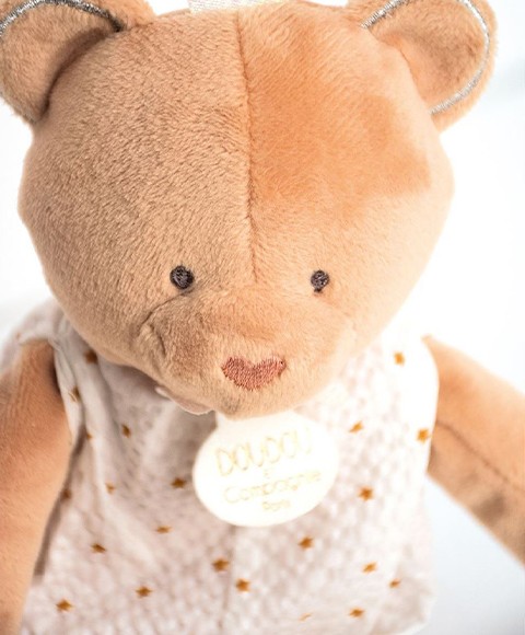 Plyšový medvídek s dečkou doprovází miminko od narození, aby mu přinesl hebkost, pohodlí a objetí. Rozvíjí smysly a zvědavost. Tento rozkošný medvídek v medové barvě se třpytivou korunkou bude s jemnými doteky něžně dohlížet na všechny maličké... Je to velmi pěkný dárek k Vánocům nebo k oslavě narození miminka. Prezentováno v pěkně ladící krabičce. Údržba: Perte v lázni na 30°. Přirozené nebo nízkoteplotní sušení. Hlavní vlastnosti: měkký plyš, prémiový materiálv souladu s evropskými normami CEkrásná dárková krabičkavhodné od narození