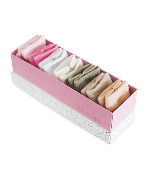 Krásné balení ponožek v dárkové krabičce pro novorozence se skládá ze sedmi párů ponožek. V barvách pro holčičku. Různé ponožky na každý den v týdnu. Originální dárek k narození miminka. Údržba: Perte v lázni na 30°. Přirozené nebo nízkoteplotní sušení. Hlavní vlastnosti: složení: 79% Bavlna, 18% Polyester, 3% Elastanvhodný dárek k narození miminkaměkké a odolné