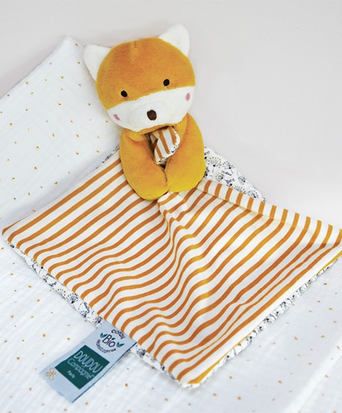 Tato liška byla vytvořena v harmonických tónech připomínajících přírodu, zlatožlutá barva slunce, okrová jako zem a nádech modré jako voda. Plyšová liška doprovází miminko od narození, aby mu přinesla hebkost, pohodlí a objetí. Organické materiály byly pečlivě vybrány, aby probudily smysly dětí a vyhovovalo všem potřebám miminek. Je to velmi pěkný dárek k Vánocům nebo k oslavě narození miminka. Je extrémně měkká a příjemná na dotek. Zasíláme náhodně. Údržba: Perte v lázni na 30°. Přirozené nebo nízkoteplotní sušení. Hlavní vlastnosti: měkké materiály 100% BIO v souladu s evropskými normami CEkrásná dárková krabičkavhodné od narození