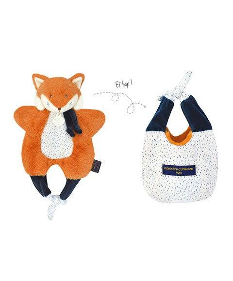 Lišku, usínáčka 30cm lze přeměnit na pěknou taštičku, která lišku uschová. Praktická hračka na hraní doma nebo procházku. Pro miminko bude mít především uklidňující efekt. Díky jemným harmoniím trendy barev, směsím velmi jemných materiálů bude tato sada lákat malé i větší děti. Ideální také jako dárek. Stimuluje představivost. Údržba: Perte v lázni na 30°. Přirozené nebo nízkoteplotní sušení. Hlavní vlastnosti: exkluzivní a inovativní konceptv souladu s evropskými normami CE3 v 1
