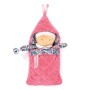 Cena uvedená za 1 ks. S těmito miminky bude skvělá zábava. Jsou dobře zabalené v pohodlných přikrývkách, které ladí s jejich pyžamkem (s květinovým potiskem, pro odstíny fialové a tmavě růžové). Každá panenka drží v ruce malou lahvičku a lze ji používat nezávisle na přikrývce. Tato přikrývka a její miminko nabízejí skvělé chvíle hry a umožňuje dětem starat se o miminko "jako dospělí". Údržba: Perte v lázni na 30°. Přirozené nebo nízkoteplotní sušení. Hlavní vlastnosti: měkký plyš, prémiový materiálmalý formát vhodný pro novorozencev souladu s evropskými normami CEvhodné od narození
