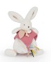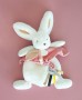Měkký králíček se rychle stane oblíbeným společníkem Vašeho dítěte. Krásný, stylový s bambulkou v růžové barvě, zdobený efektními, dovedně sladěnými tkanými stuhami. Je posazený do nádherné dárkové krabičky s grafikou evokující modernost i luxus. Tato plyšová hračka je také ideální jako dárek. Údržba: Perte v lázni na 30°. Přirozené nebo nízkoteplotní sušení.  Hlavní vlastnosti: měkký plyš, prémiový materiálv souladu s evropskými normami CEkamarád, polštářek, nebo také výzdoba dětského pokojevhodné od narození