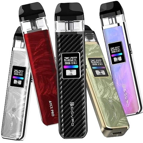 Elektronická cigareta typu POD, určená pro MTL i RDL styl vapování. Rozměry: 115,1mm x 25mm x 14,5mm, hmotnost: 63g, rozsah výstupního výkonu: 5W – 30W (nastavitelný), Objem cartridge: 2ml, baterie: 1000mAh (integrovaná), automatické i manuální spínání potahu, OLED displej, regulace přívodu vzduchu (Airflow), nabíjení: USB-C 5V/1A, materiál: Plast (PC), PCTG, zinková slitina, výrobce: Dovpo, barva: Nacre Blue (modrá). Celý popis