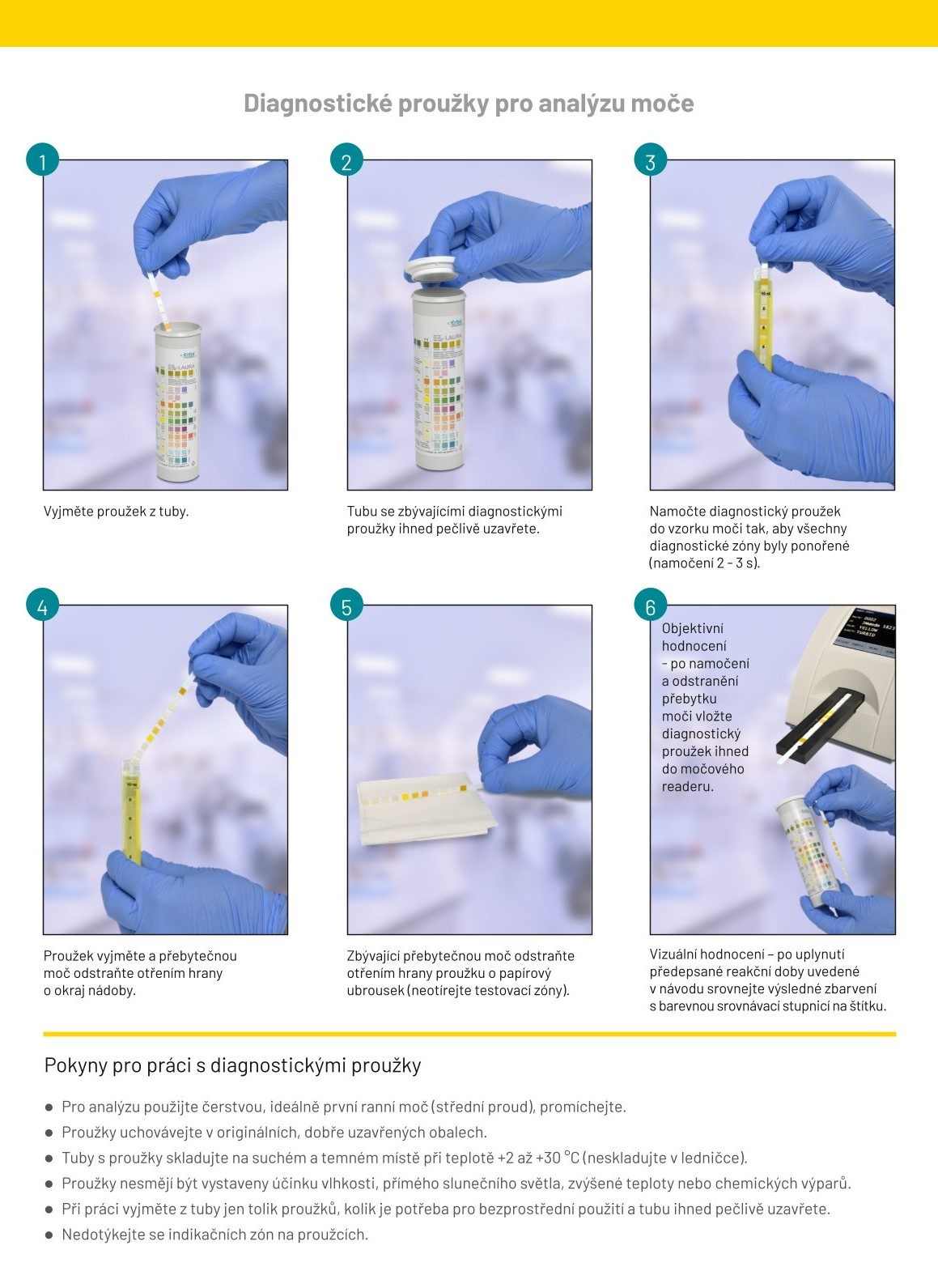 HEPTAPHAN-Test slouží ke zjištění přítomnosti bílkoviny, glukosy, ketonů, urobilinogenu, krve a pH moče.