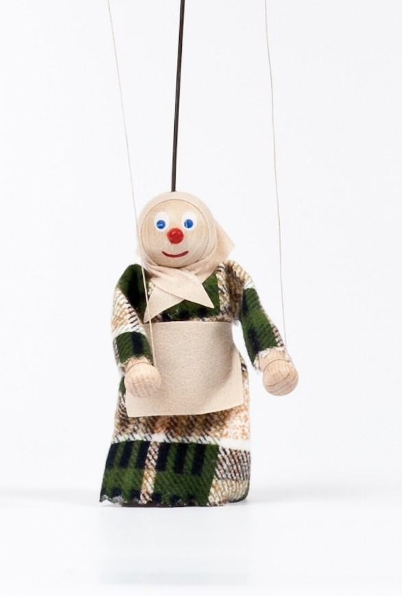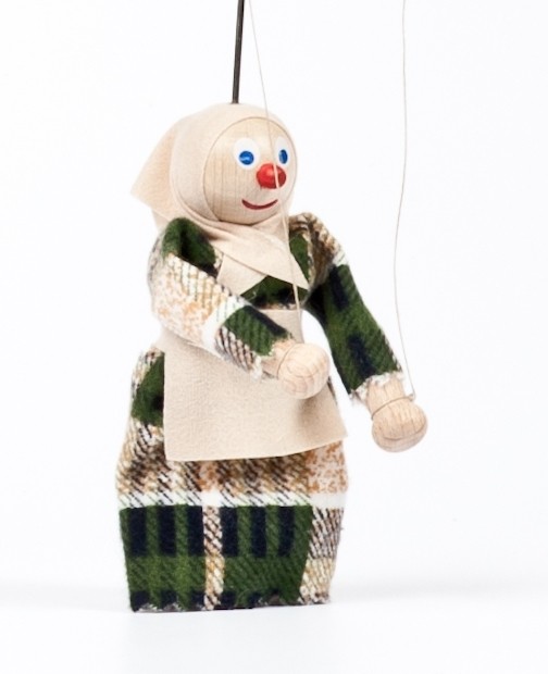 Do loutkového divadla patří určitě babička. Do jaké pohádky se vám bude hodit? Pokud neznáte pohádku O Budulínkovi nebo O Červené Karkulce, určitě si můžete zahrát příběh o své nejhodnější babičce. Nabízíme vám loutku o velikosti 12 cm bez vodícího drátku, vyrobenou pečlivě v naší chráněné dílně. Produkt se může lišit v barevných detailech. Hlavní vlastnosti: Ručně vyráběná loutka z chráněné dílnyVelikost loutky je 12 cm bez vodícího drátkuDíky vodícím nitím, má loutka pohyblivé ruce