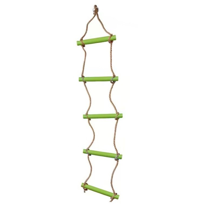 Lanový žebřík s 5 plastovými příčkami v zelené barvě.Nezbytný pomocník pro objevitele venkovní zábavy na dětském hřišti nebo k domečku na stromě. Hlavní vlastnosti: Nosnost: 80 kgDélka žebříku je 160 cm