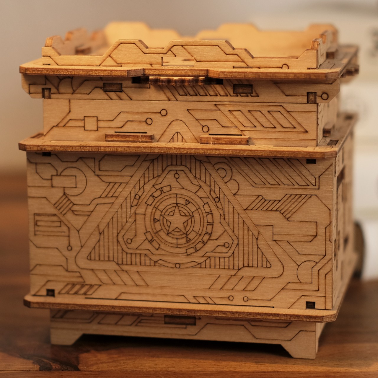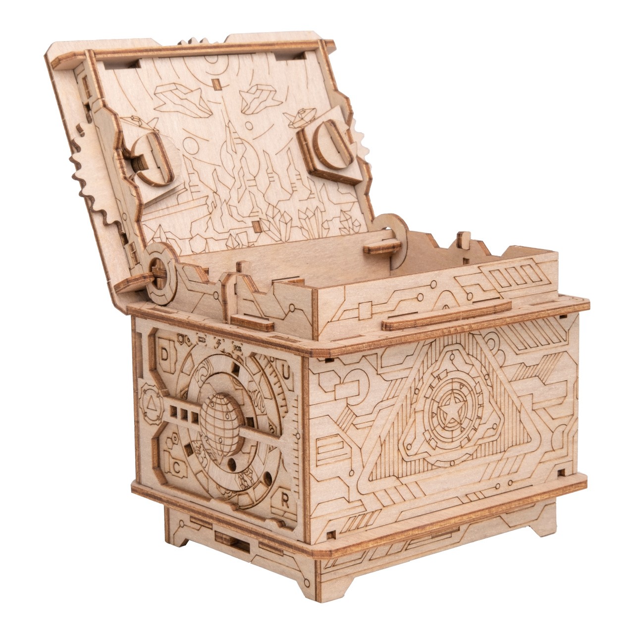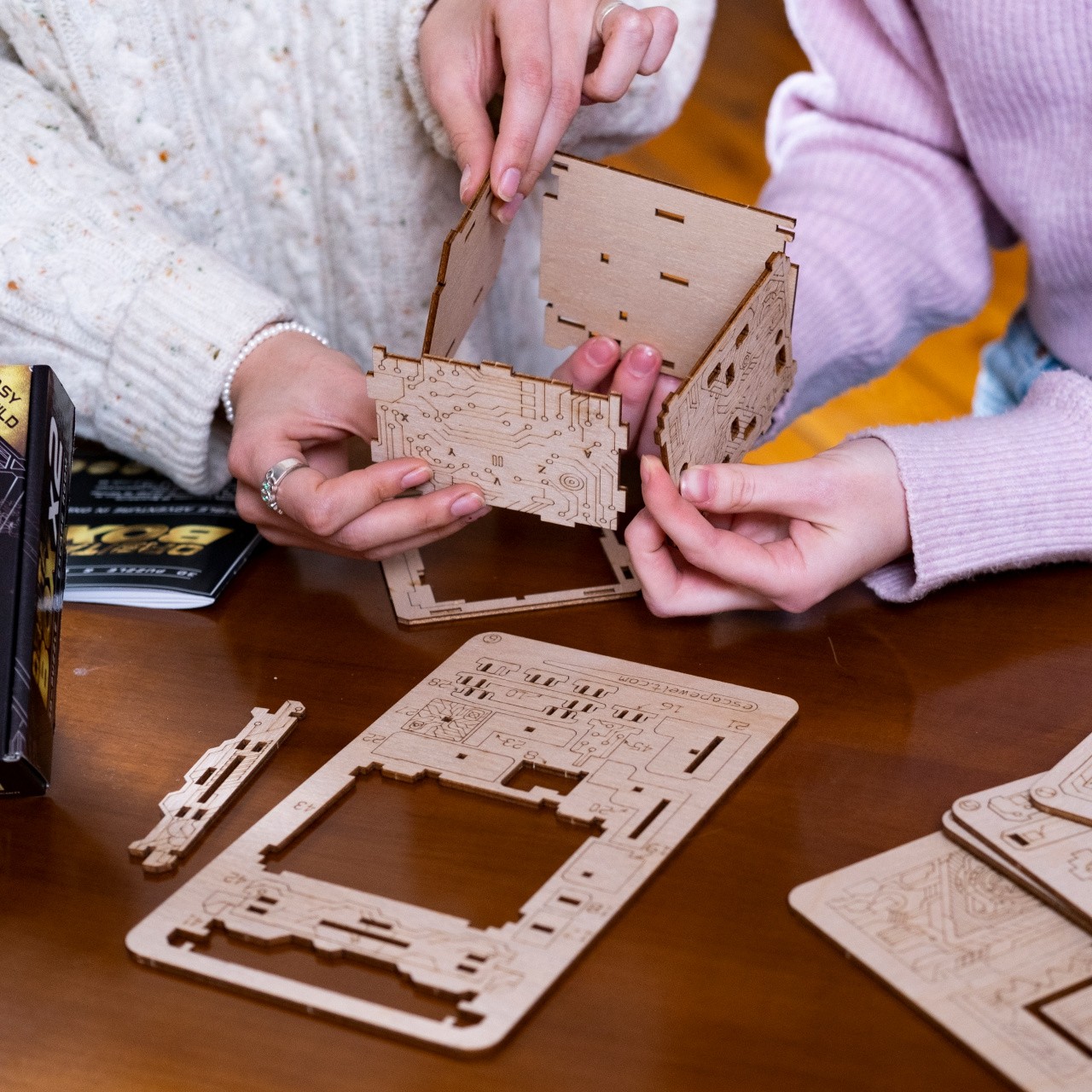 Velíte kolonizačnímu týmu, který míří k jediné obyvatelné planetě ve známém vesmíru, Elysii. Vaše loď opustila sluneční soustavu a provedla skok napříč časoprostorem, aby lidstvu nakonec otevřela nové obzory. K dosažení cíle zbývá udělat už jen několik nezbytných kroků, zkontrolovat radar, určit přesné místo přistání, vypnout systém autopilota a vložit spouštěcí klíče. Kdyby jen napájecí systém lodi nebyl tak matoucí… Ach, hotové bludiště! Jste však zkušený kapitán a žádný úkol Vás nezaskočí. K přípravě přistání v novém domově budete muset zadat správné kombinace písmen a čísel, vložit hesla do databáze a vyhledat spouštěcí klíče. Nezapomeňte na systém proti nedůslednému vkládání, bedlivě sledujte symboly! Chybná zadání zabrání úspěšnému spuštění přistávací sekvence. Zlomte vaz, kapitáne! ∗★∗ Nepovažujete hotový hlavolam za dostatečnou výzvu a chcete jej napřed sami sestavit? S novou řadou mechanických puzzle EscapeWelt máte jedinečnou příležitost! Stavebnicí z překližky vyzkoušíte svůj důvtip a dovednosti hned dvakrát. Výsledný model ukrývá malou přihrádku, kterou můžete kreativně využít k úschově vodítka ve vlastní dobrodružné hře, nebo zpestření zážitku z drobného dárku. Součástí balení je podrobný obrázkový návod k sestavení a postup odemknutí, který obsahuje také QR kód vedoucí na stránku s nápovědou. Rébus má vždy jedno řešení, kvalitním provedením je ale předurčen k dalšímu použití, neváhejte jím proto dále obdarovat a vyzvat své přátele, nebo členy rodiny.   Hlavní vlastnosti:88 precizně vyřezaných dílkůrozměry vnitřní přihrádky 7,5×9,5×8 cmvysoká obtížnost sestavení a řešenívyrobeno v EU