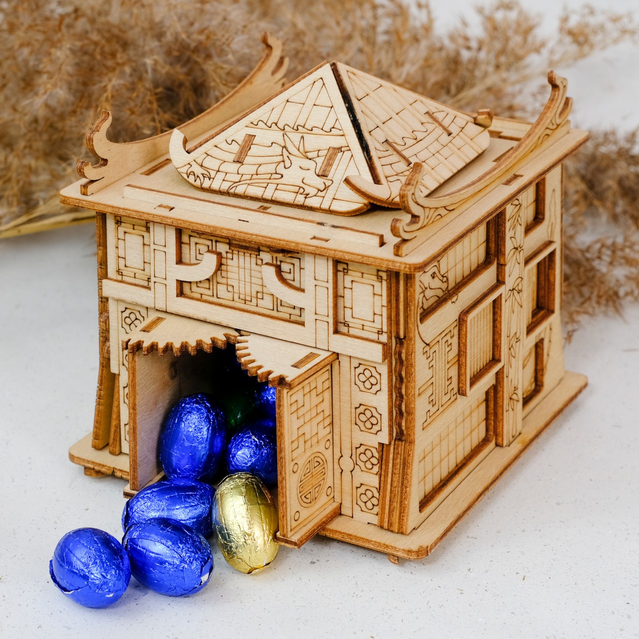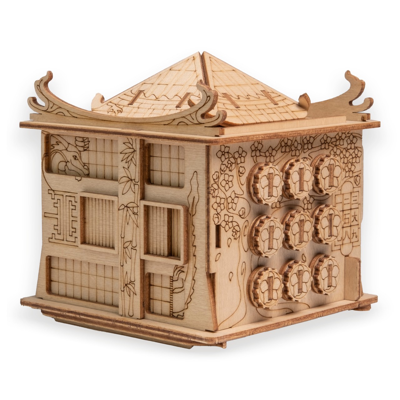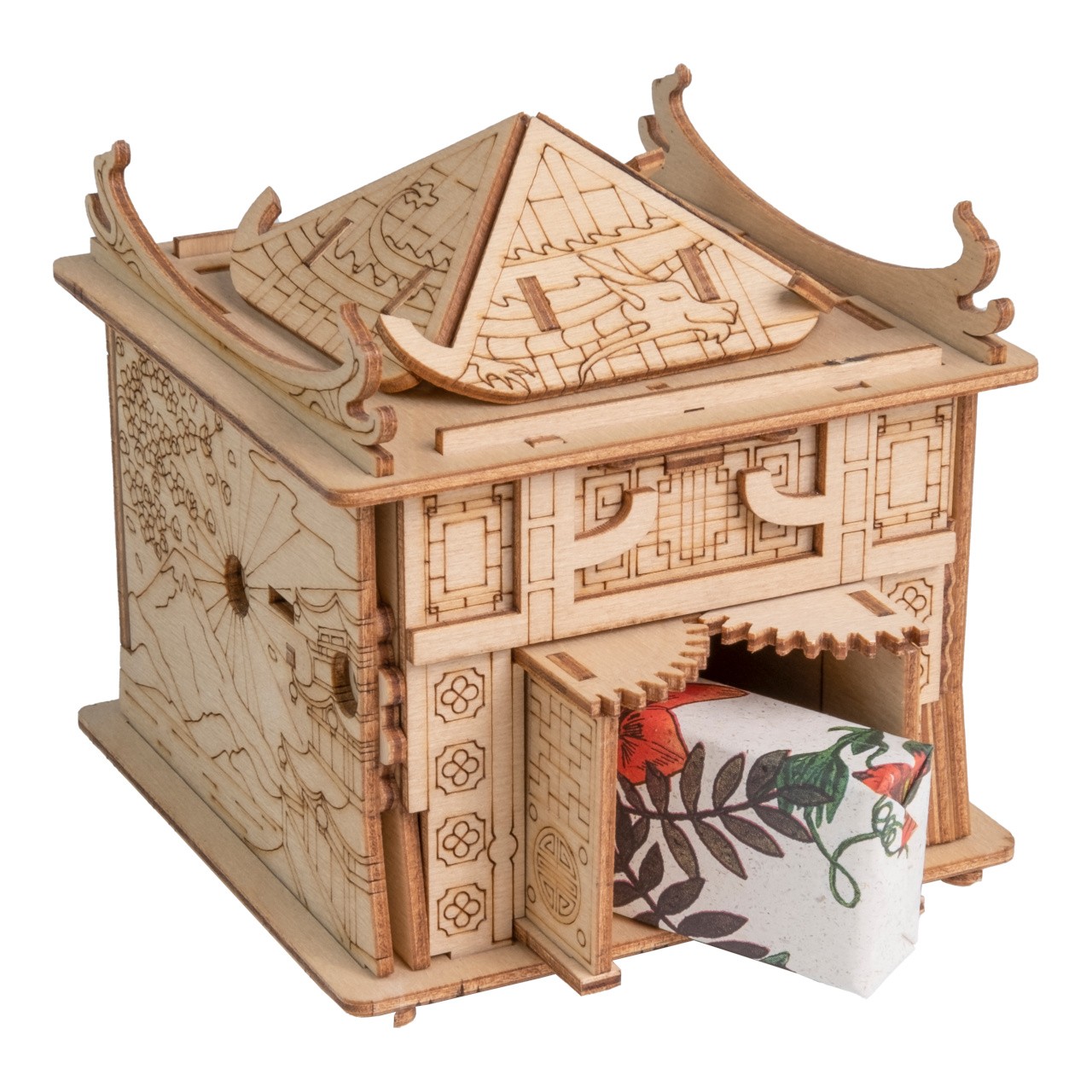 Japonský truhlář Asahi celé mládí zasvětil péči a ochraně svého jediného syna, Ryota. Hned po dosažení plnoletosti se syn osamostatnil a odstěhoval do Tokia. Roky plynuly a Ryoto v záplavě všedních starostí na svého otce postupně zapomněl. Asahi se po čase doslechl, že jeho syn již má rodinu a děti. Tolik snil je všechny spatřit… Jedné noci se mu ve snu zjevil drak, který k němu promlouval. Když se truhlář vzbudil, našel na stole nákres dřevěné hračky. Odhodlal se ji vyrobit a jen co ji dokončil, na dveře zaklepal Ryoto s celou rodinou! Asahi blízkým vyprávěl o svém zvláštním snu a představil jim právě dokončenou hračku. Děti se pokoušely hádanku rozluštit, ale nakonec jim museli pomoci rodiče. Díky tomu pak všichni pochopili, že pohromadě jsou silnější a snáze překonají překážky. ∗★∗ Zakuste atmosféru únikových her s originálními scénáři a hádankami u Vás doma! Každý hlavolam ukrývá malou přihrádku, kterou můžete kreativně využít k úschově vodítka ve vlastní dobrodružné hře, nebo zpestření zážitku z drobného dárku. Součástí každého balení je jednoduchý obrázkový návod, který obsahuje také QR kód vedoucí na stránku s nápovědou. Rébus má vždy jedno řešení, kvalitním provedením je ale předurčen k dalšímu použití, neváhejte jím proto dále obdarovat a vyzvat své přátele, nebo členy rodiny.   Hlavní vlastnosti:rozměry vnitřní přihrádky 7×5×4,5 cmvysoká obtížnost řešenívyrobeno v EU