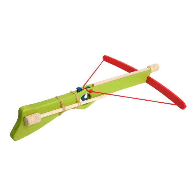 Tato dřevěná hračka je vyrobena z masivního dřeva. Její povrch včetně hran je vyhlazen. Dřevěná kuše poskytne spoustu zábavy jak malým, tak i velkým dětem. S touto kuší jsou všichni lovci dobře vybaveni. Hlavní vlastnosti: rozvíjí pohybové dovednosti a přesnostsplňuje požadavky EU pro bezpečnost hračekvyrobena z masivního dřeva