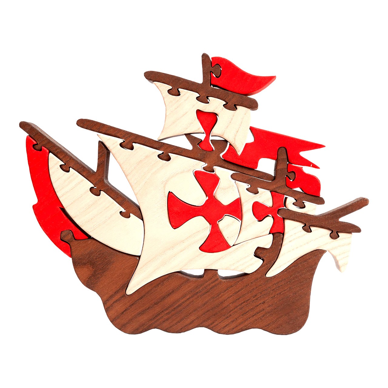 Úvod Pro děti Puzzle Vkládací Velké Fauna Dřevěné vkládací puzzle z masivu loď Santa Maria