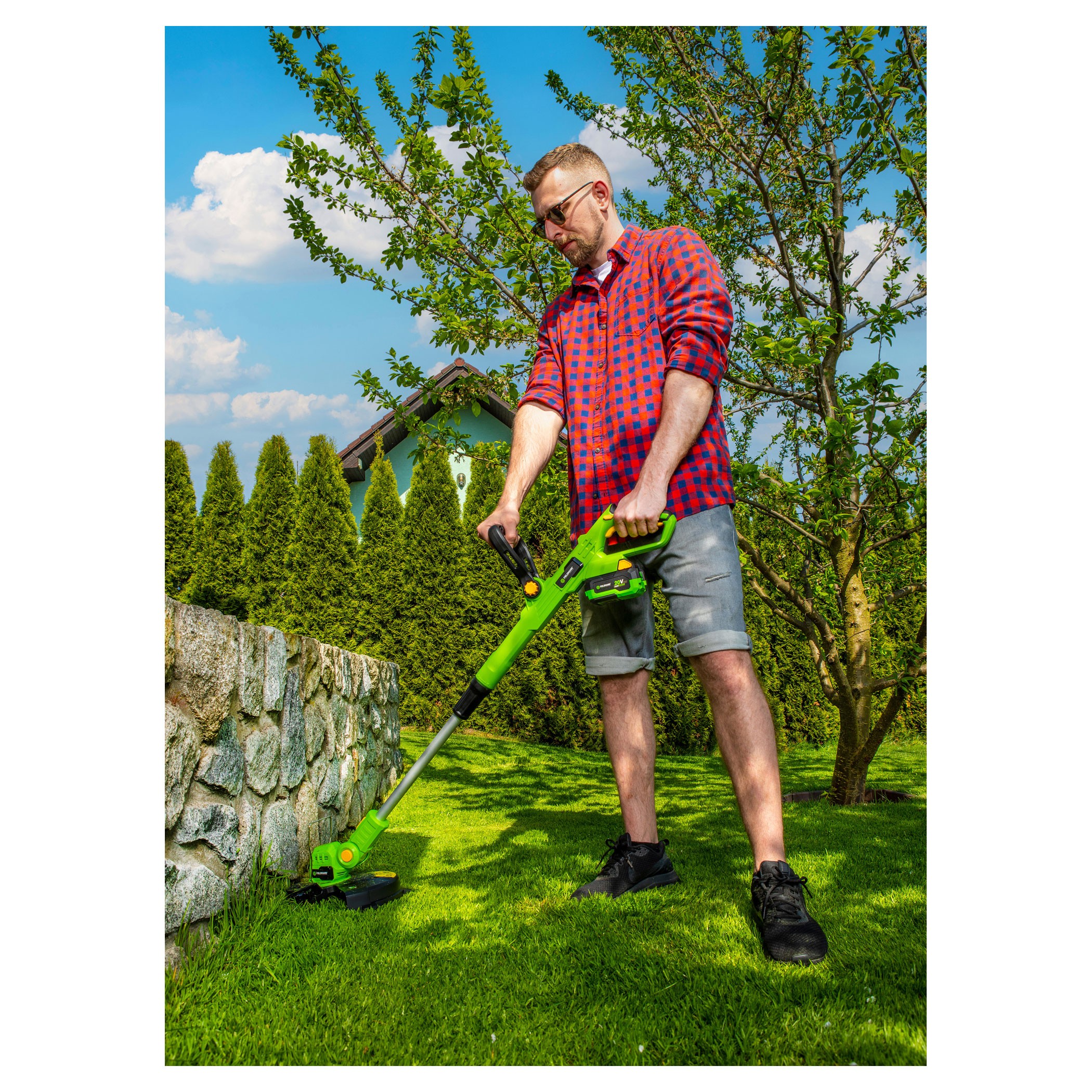 Akumulátorová strunová sekačka na trávu značky FIELDMANN si poradí s každou trávou podél cest i v těsné blízkosti plotů a zídek. Strunová sekačka dosahuje dostatečného výkonu díky plnému využití síly 1 x 20V akumulátoru ve spojení s elektronickou řídící jednotkou. O komfortní práci se kromě teleskopického nastavení délky stroje a kloubové vyžínací hlavy stará též otočná horní rukojeť a ergonomické madlo. Je možno použít akumulátory o kapacitách 2Ah / 4Ah které jsou kompatibilní do všech výrobků společnosti FIELDMANN řady FAST POWER 20V.