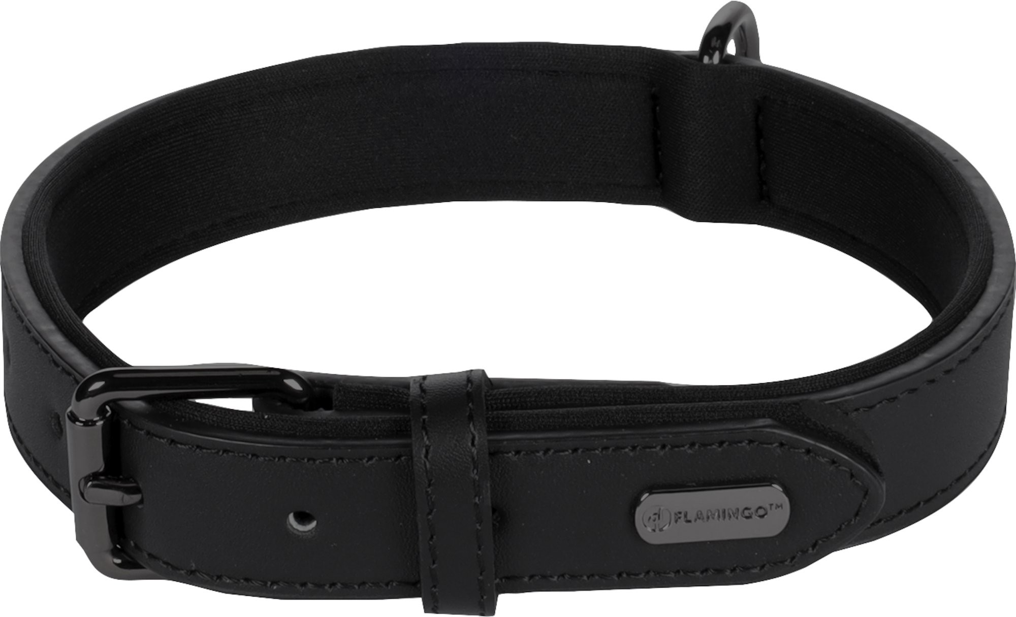 Flamingo Binti Kožený obojek s neoprenem Černá M/L