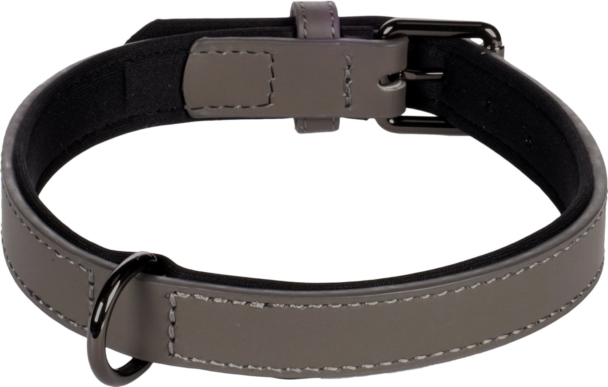 Flamingo Binti Kožený obojek s neoprenem Šedá M