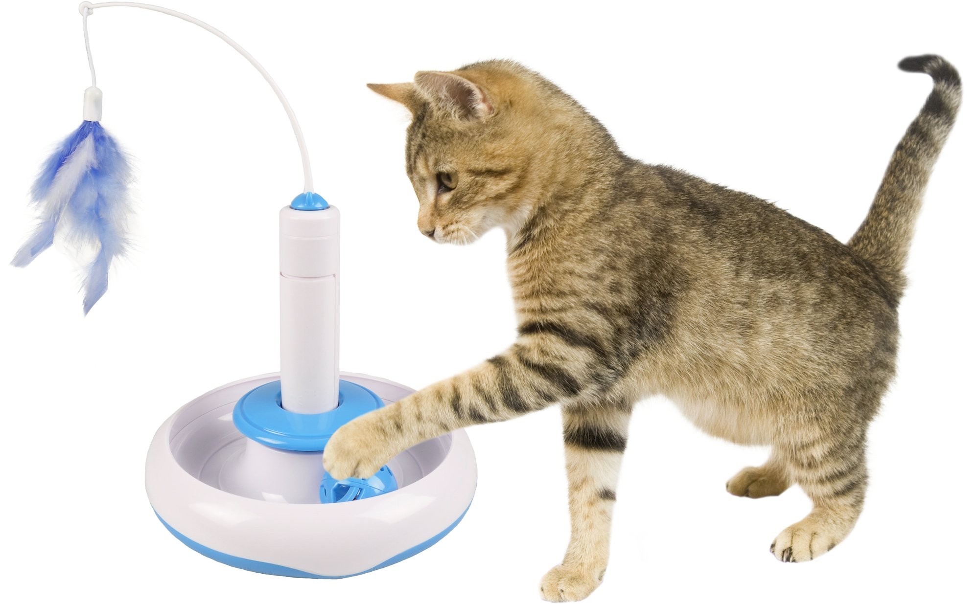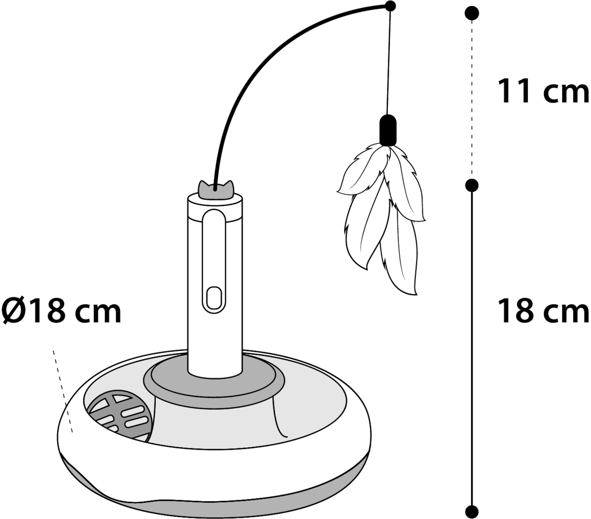 Interaktivní hračka pro kočky s peřím na lanku a míčkem nabízí Vaší kočce zábavou výzvu. Hračka má protiskluzové gumové nožičky.Vyžaduje 2 baterie AAA (nejsou součástí balení).