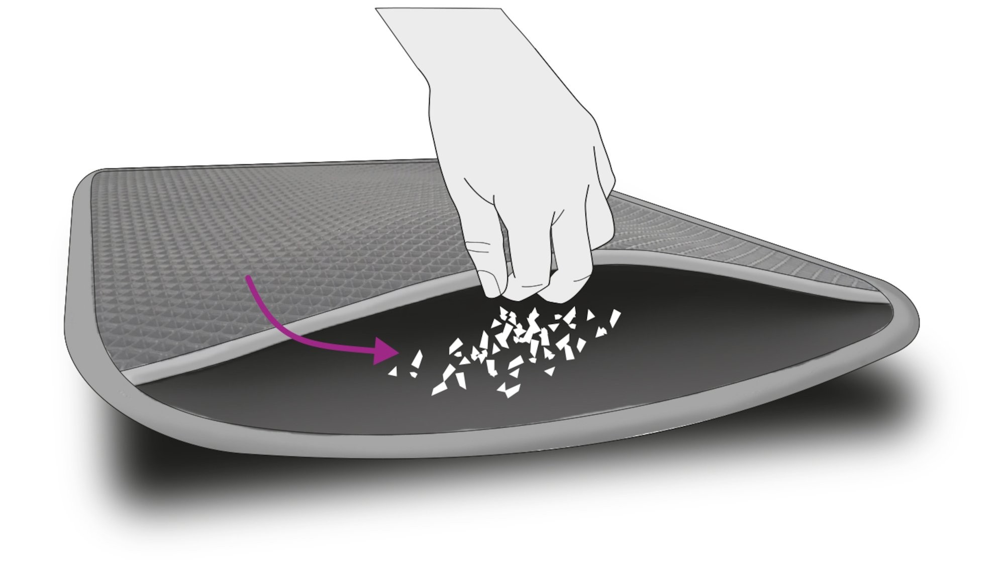 • Dvojitá vrstva pro efektivní sběr kočičího steliva
