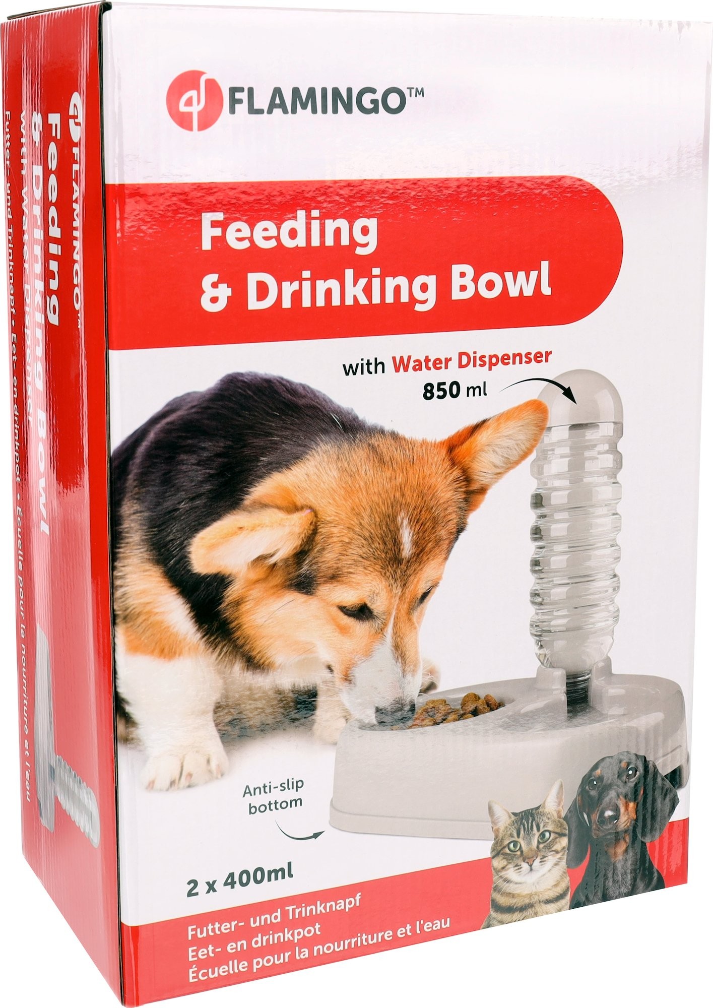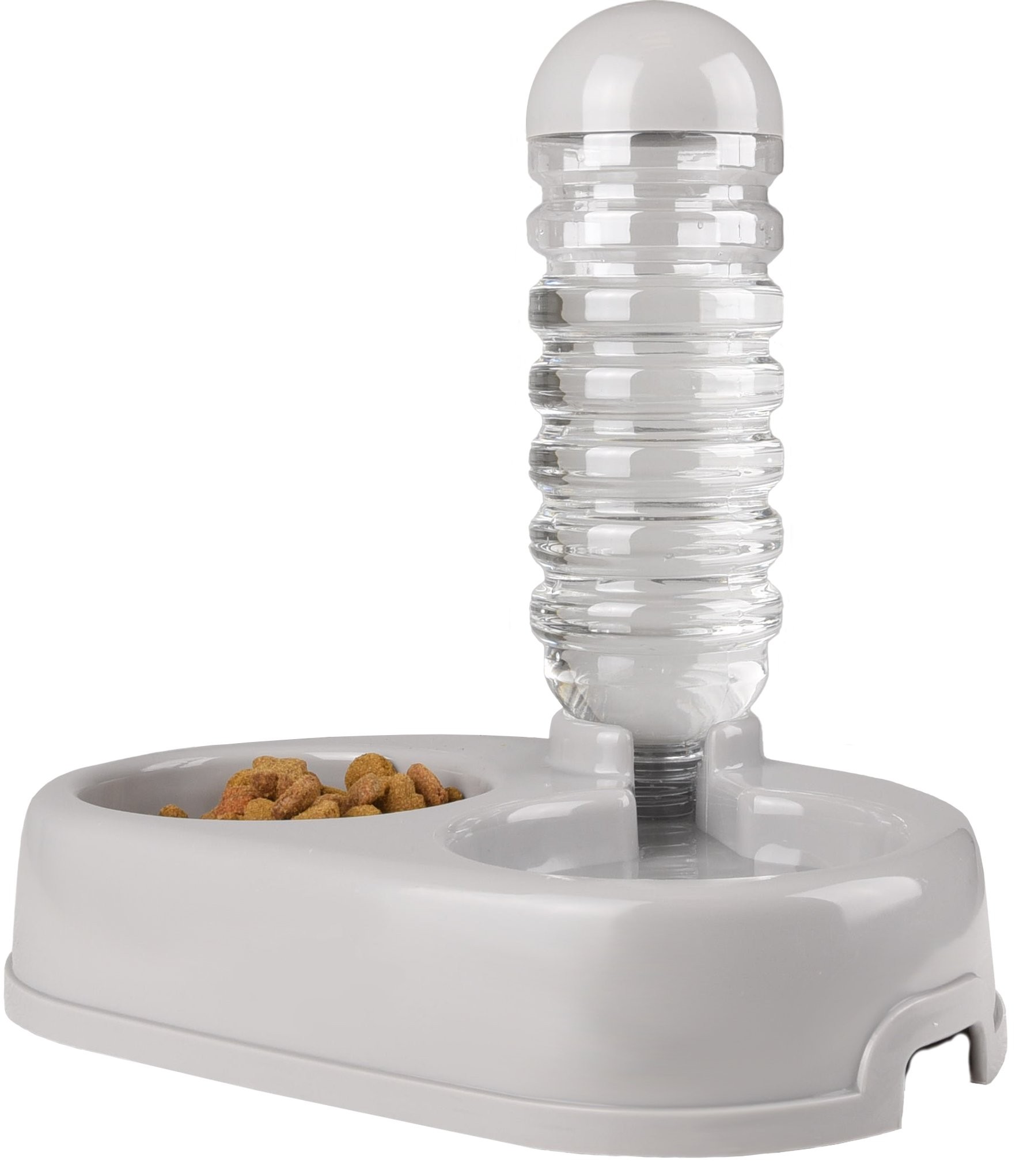 Praktická dvojmiska na jídlo i vodu, kdy do jedné misky automaticky proudí voda ze zásobníku a ze druhé Váš pejsek nebo kočka baští nějakou dobrotu.