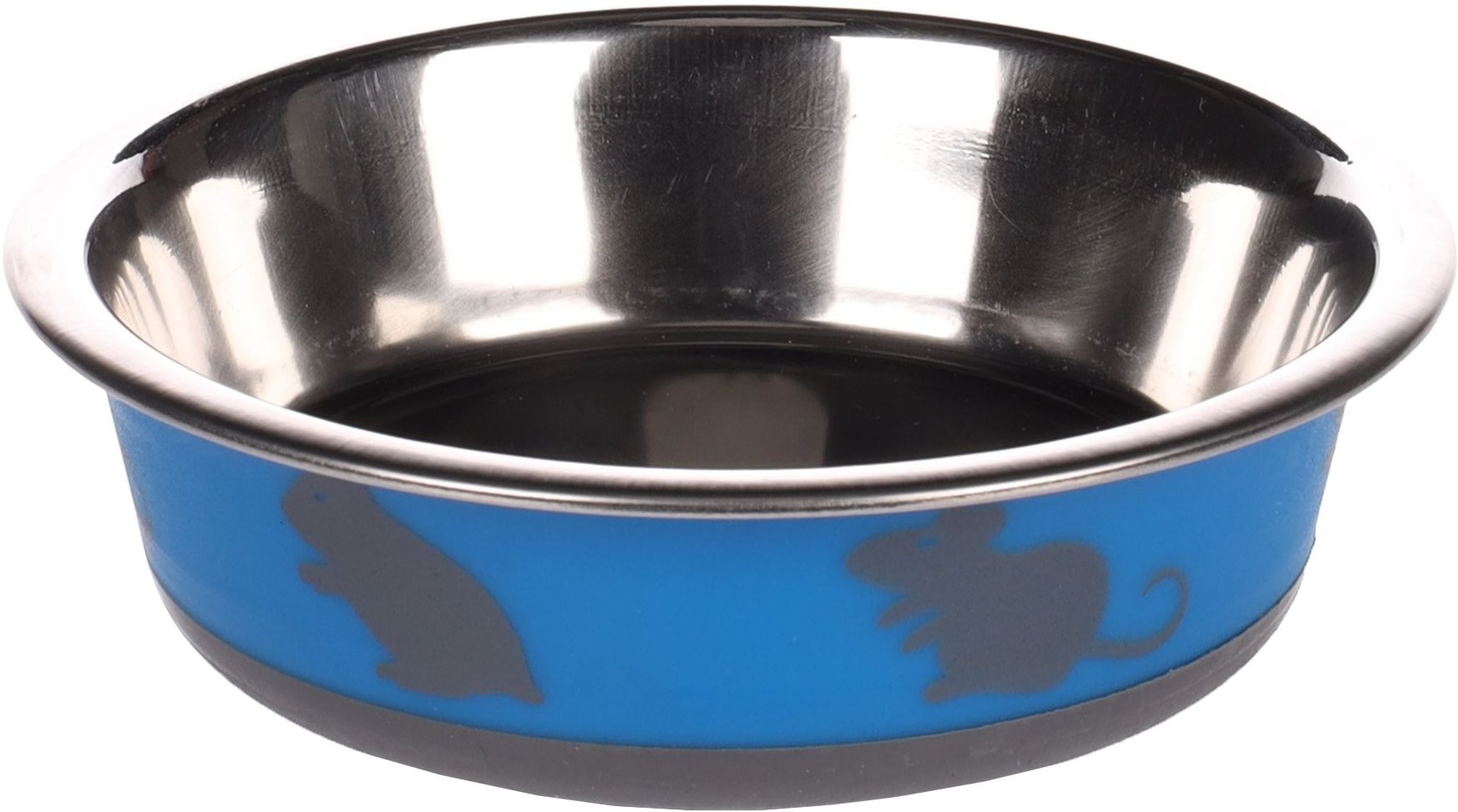 Hezká nerezová miska s plastovým opláštěním modré barvy. Objem misky 225ml. Průměr 12cm.
