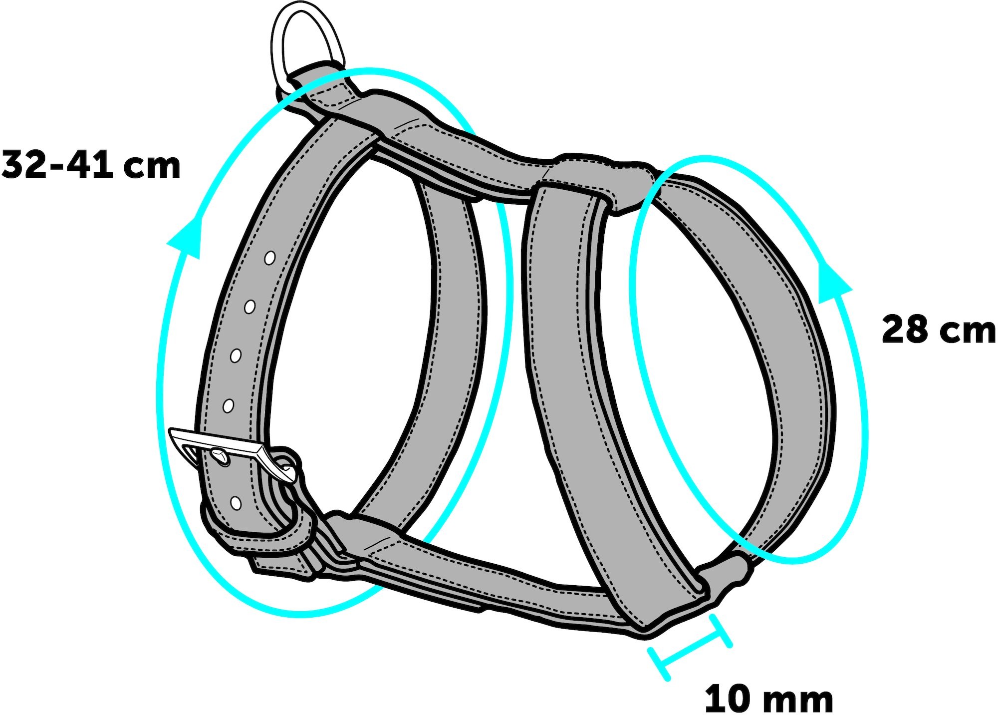 Vhodné pro koťata s obvodem ramen 28 cm. Délka vodítka 110 cm. Celý popis